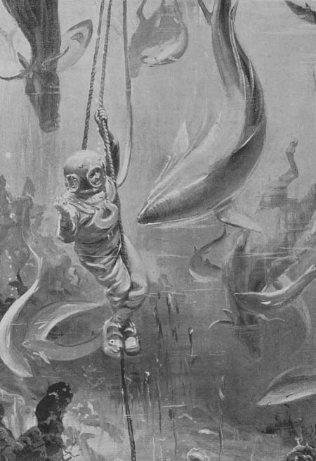 | Father Neptune’s kingdom down below has been invaded by presumptuous man, who not only goes upon the sea in ships, but under as well; while when the need arises he doesn’t even bother about a ship! These are stories of divers and submarines. | |