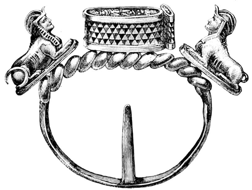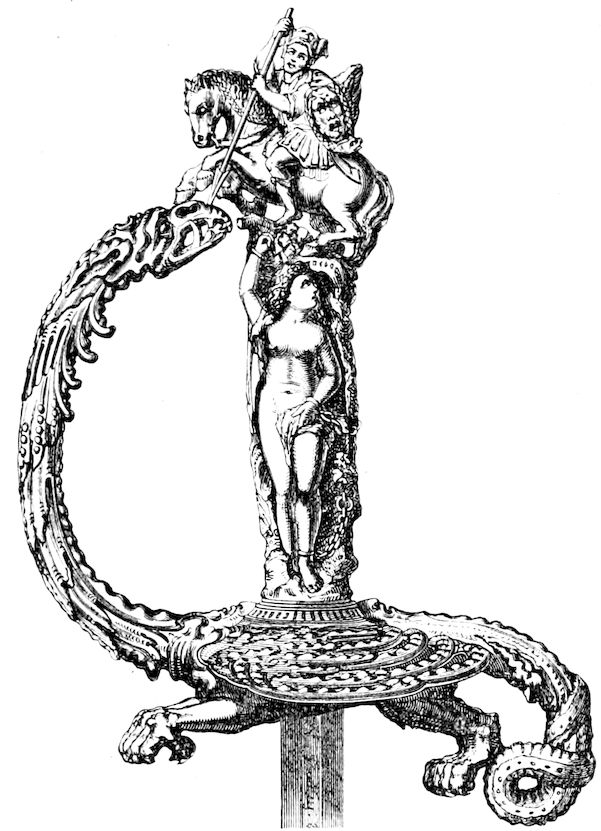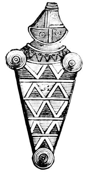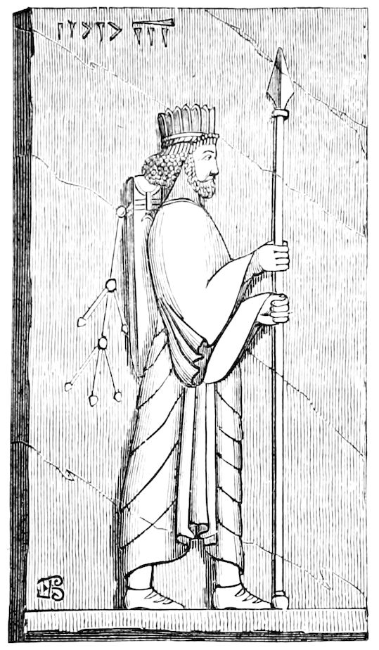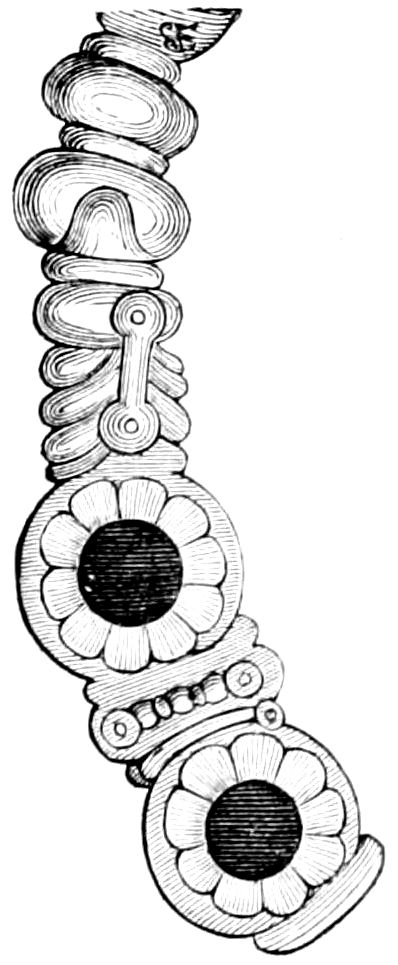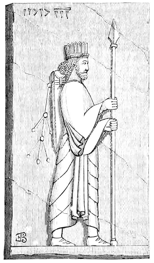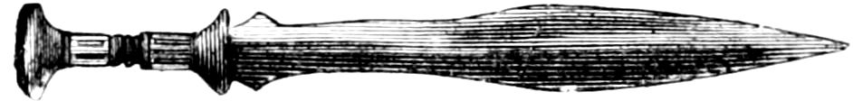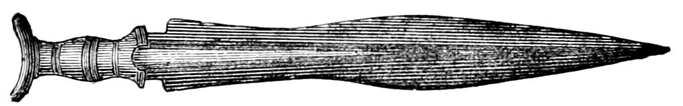 Acinaces, Orient. (ἀκινάκης; orig. a Persian word). A straight poniard resembling a very short Roman sword, used by the Eastern nations of antiquity, especially, the Medes, Persians and Scythians. It was worn by soldiers suspended from a belt round the waist, but the weapon hung either at the right or the left side, according to the nationality and accoutrements of the soldier. When, however, he wore a sword, this was always placed at the left, and the acinaces at the right side of the body. The handles of these weapons are generally extremely rich.