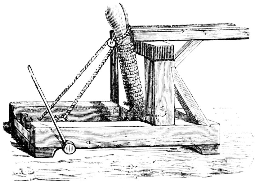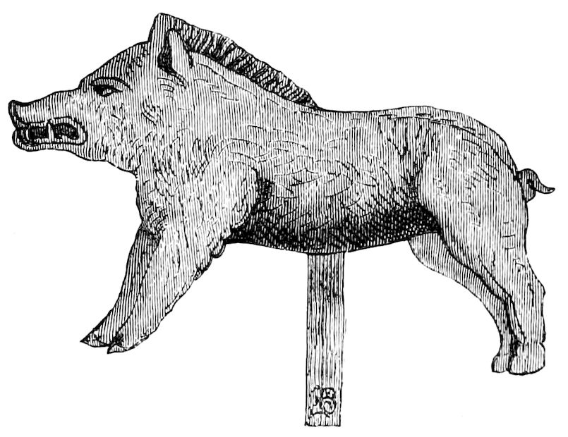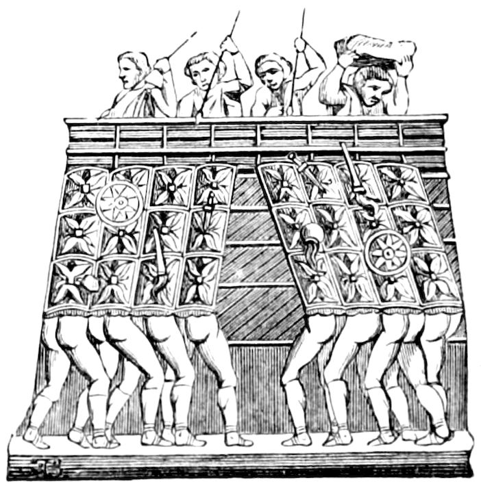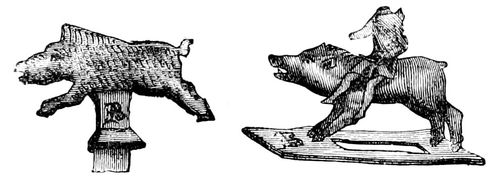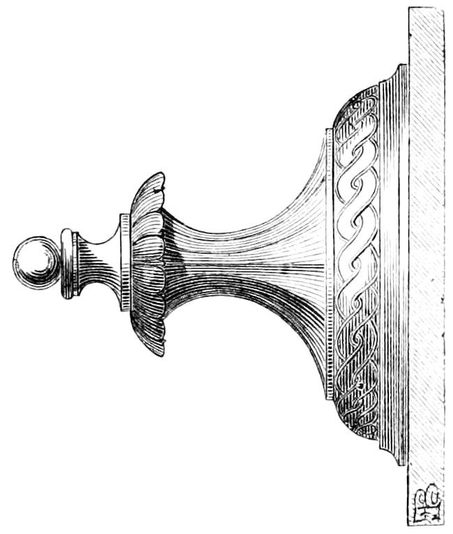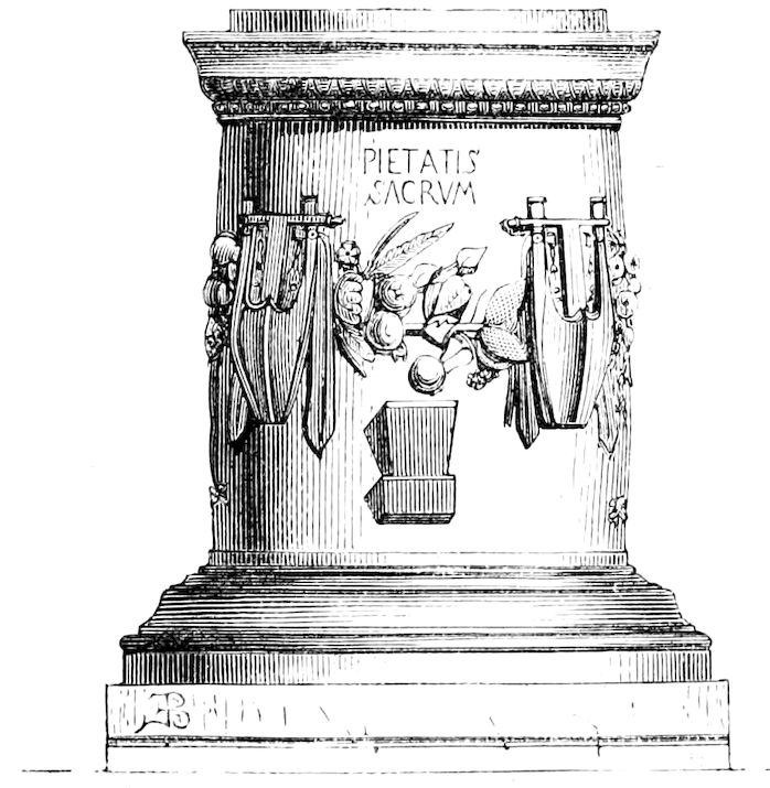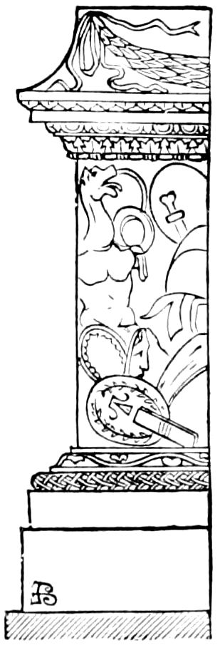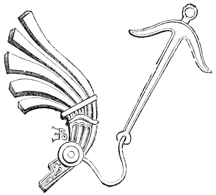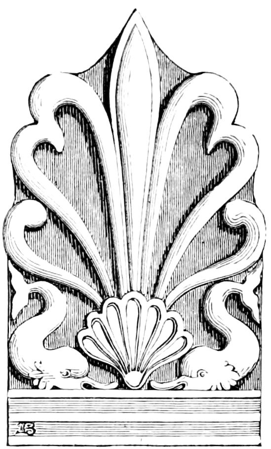 Acrostolium, Gr. and R. (ἀκροστόλιον, extremity of beak of a ship). An ornament employed by the ancients to decorate the upper extremity of the prows of ships. This ornament often figured among trophies, since it was the custom for the victor in a naval combat to take the acrostolia from the captured ships. It is frequently to be met with on the bas-reliefs of triumphal monuments. Fig. 8 shows an acrostolium taken from a bas-relief in the Museum of the Capitol. The object seen projecting from the acrostolium is a sounding lead.