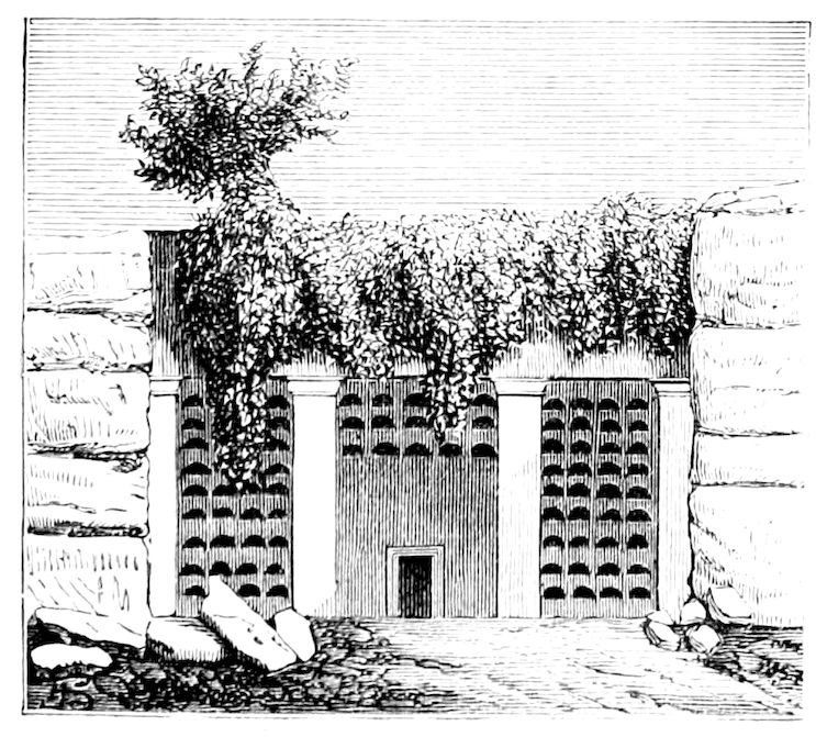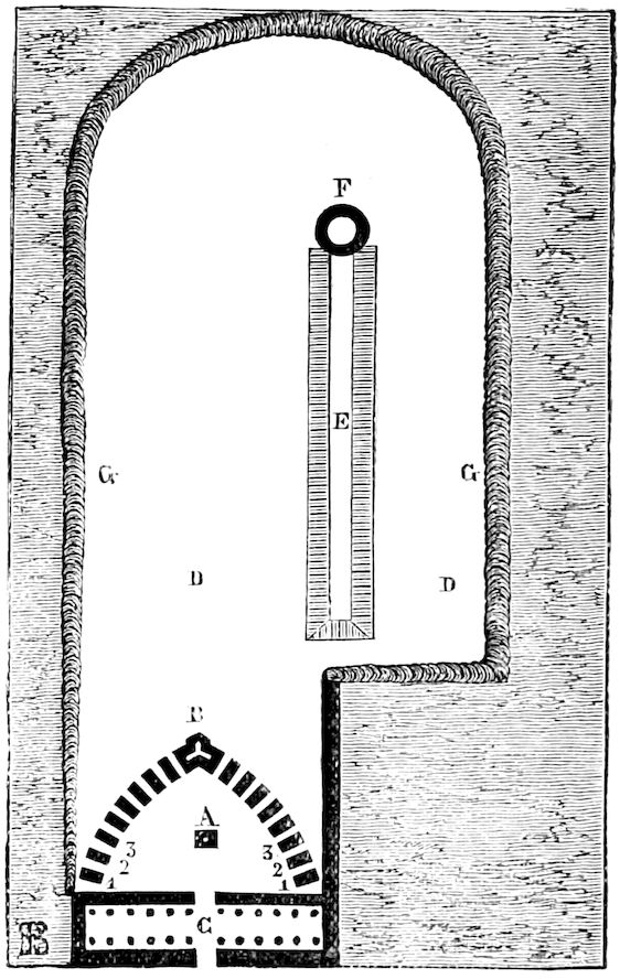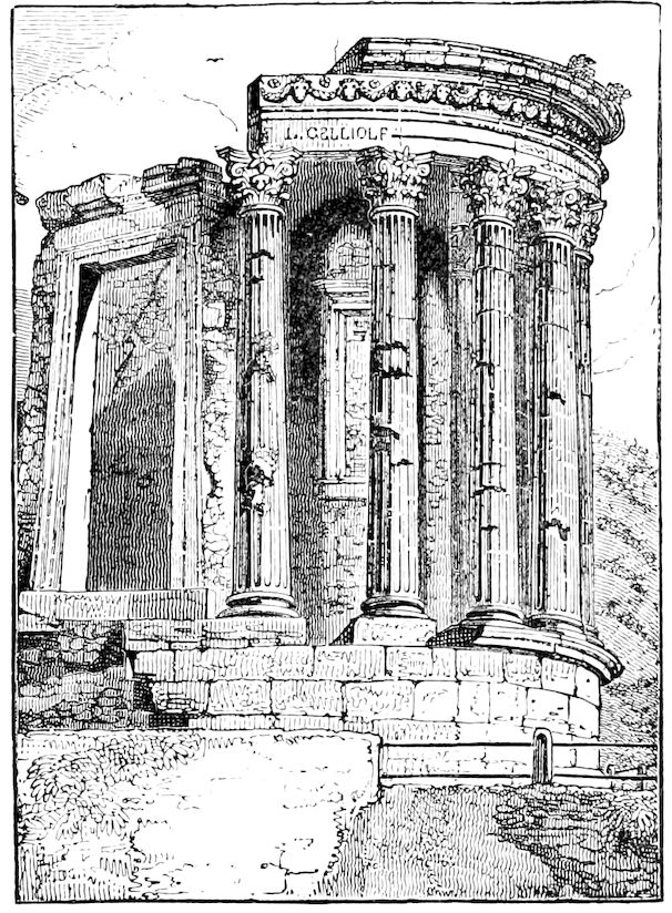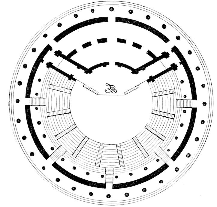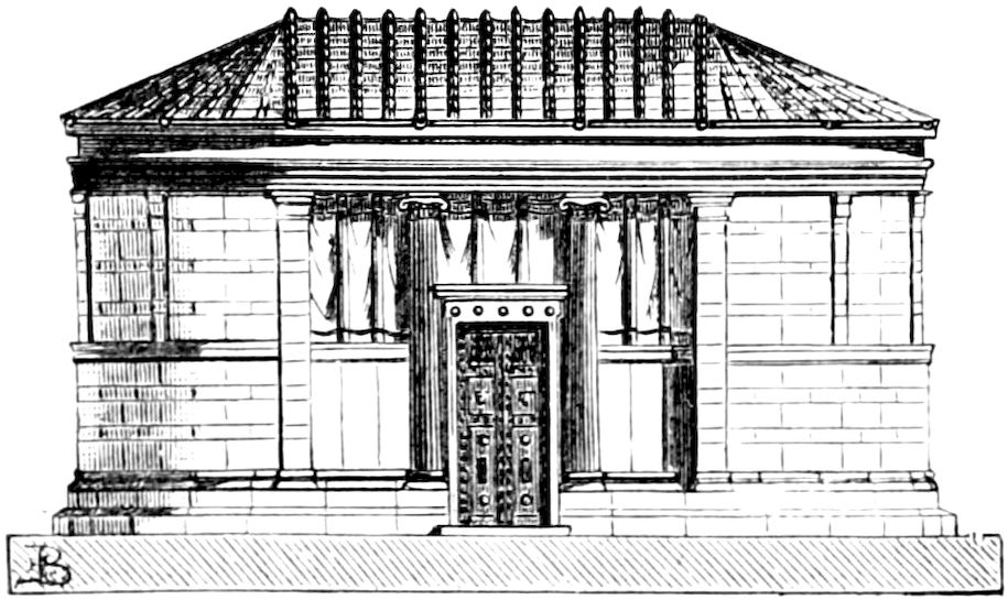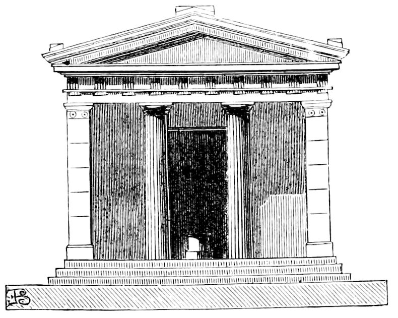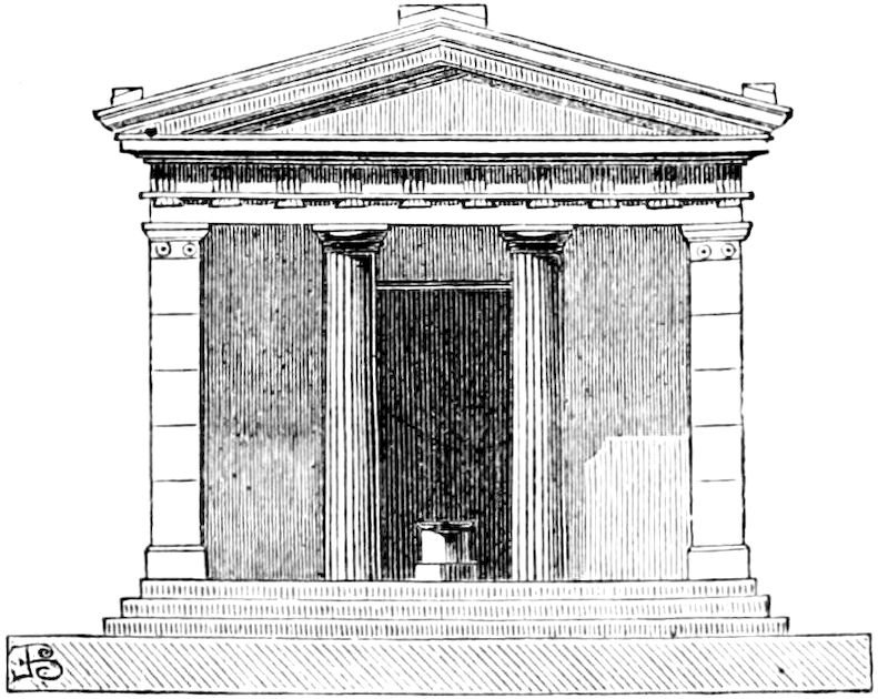 Adytum or Adyton, Gr. and R. (ἄδυτον, from α, priv., and δύω, to enter). An obscure and secret sanctuary in certain temples from which the public was excluded, and into which the priests alone might enter. The little temple of Pompeii possessed an adytum, and it was here that was discovered the Portici Diana now in the Naples Museum. There was also an adytum in the temple of Delphi, which was burnt down in the first year of the 58th Olym., and rebuilt by the Corinthian Spintharus. The temple of Paphos contained in its adytum a representation of the goddess under the form of a column pointed at the top and surrounded by candelabra. The engraving shows the position of the adytum of a small Doric temple, now destroyed, which once stood near the theatre of Marcellus at Rome. The adytum was the name given to the cella of a temple, in which oracles were given, or the worship was connected with mysteries. See Abaton and Cella.