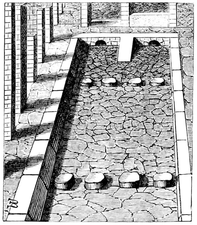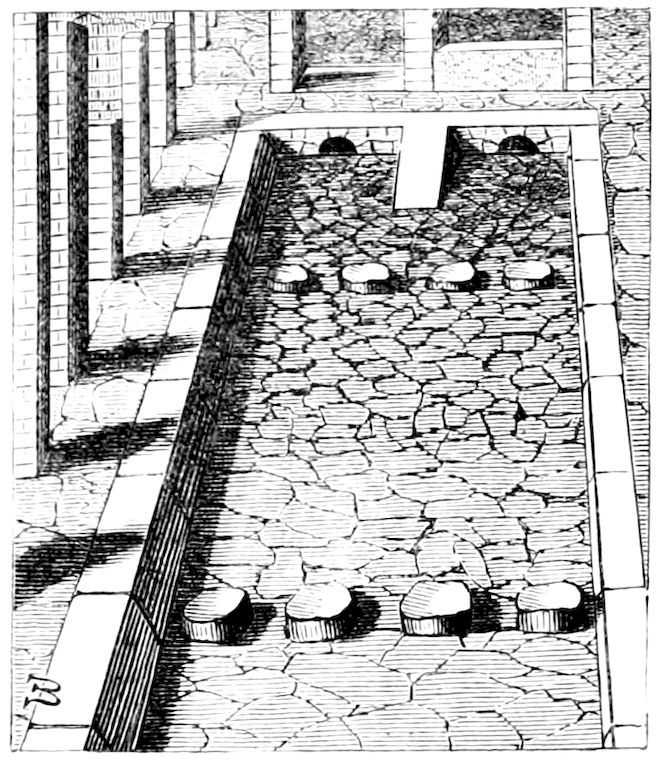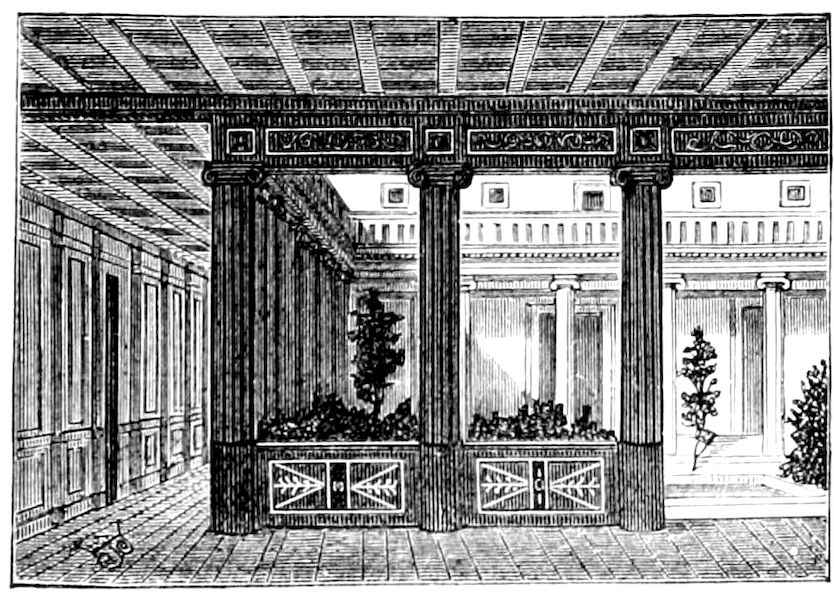 Xystus, Gr. (ξυστός). A covered place situated near a portico, within which, in a palæstra or stadium, athletes went through their exercises. Pausanias tells us that this part of the stadium received its name from the fact that Hercules used every day to clear out the palæstra at Elis in order to inure himself to toil, and that he tore up many weeds by scraping (ξύω, to scrape, ξυστός). The baths and thermæ at Rome were furnished with large xysti, in which young men went through a number of exercises. The term xystus was also generally applied by the Romans to the beds of rare flowers and shrubs in the centre of the peristyle; it also denoted a garden walk perfectly straight, and planted in a regular style; and lastly, an open walk or terrace in a garden attached to any building.