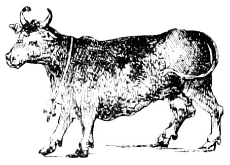 Zebu. The humped species to which the sacred Brahmin bull belongs, represented in Hindu art.