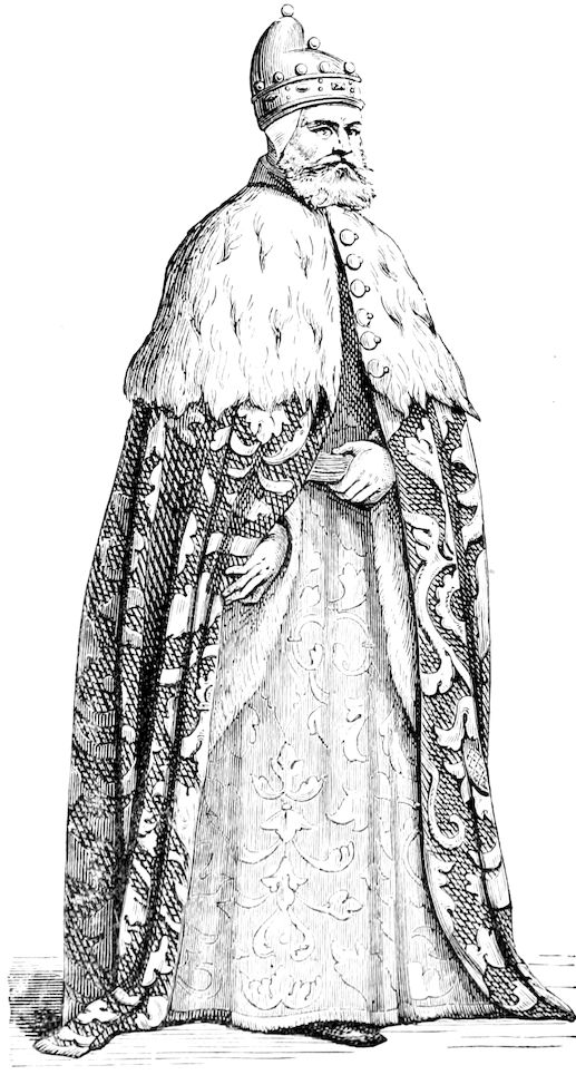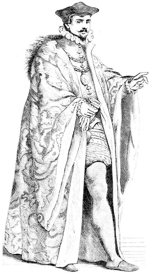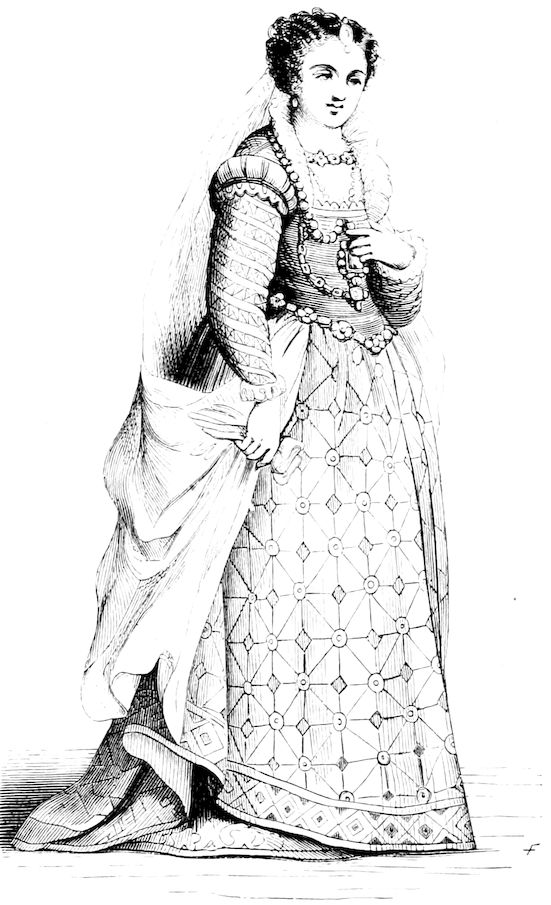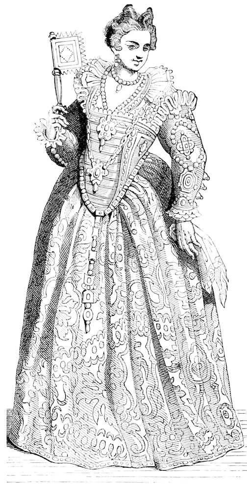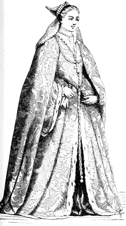 Fig. 704. Duchess of Parma in richly embroidered robes and zimarra.