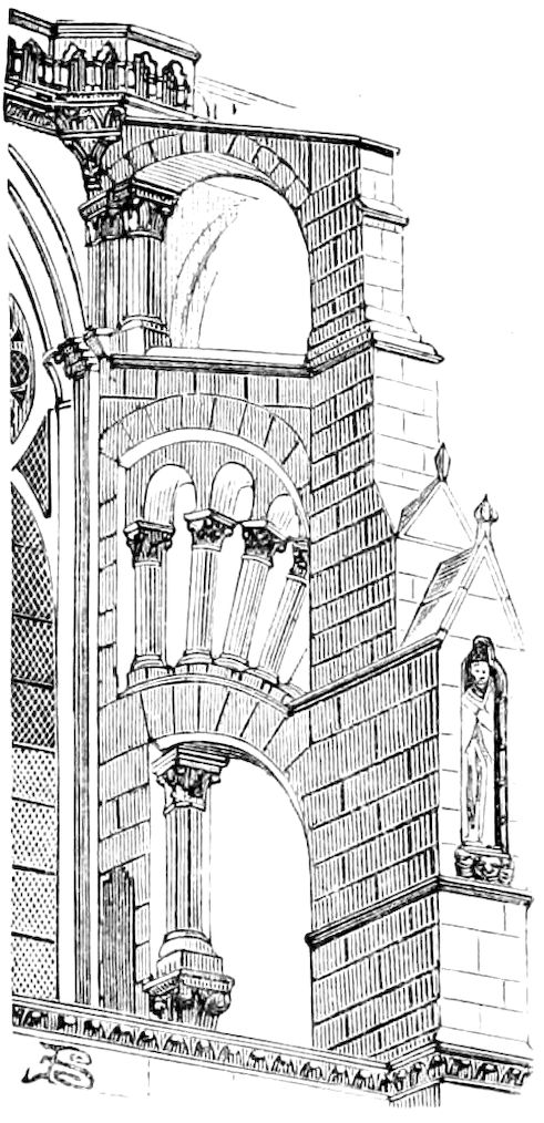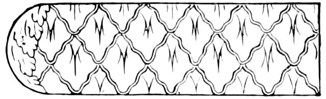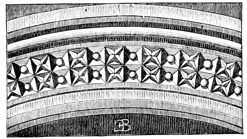 Zigzag, Arch. One of the mouldings frequently used in Norman architecture, running in zigzag lines. (See Fig. 488.) Fig. 123 is an illustration of a variety of this ornament on a column. Zigzig mouldings in connexion with pointed arches are characteristic of the transition period of architecture, from the Norman to the Early English, frequently called chevron.