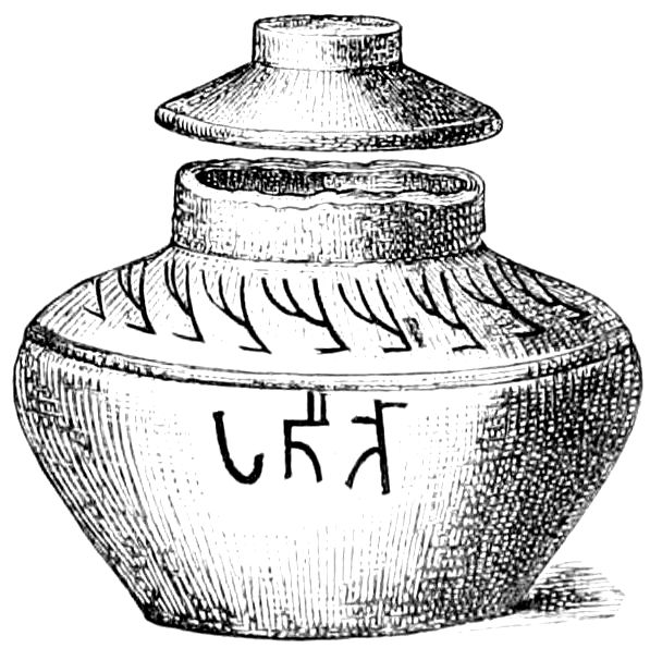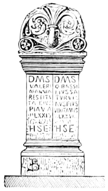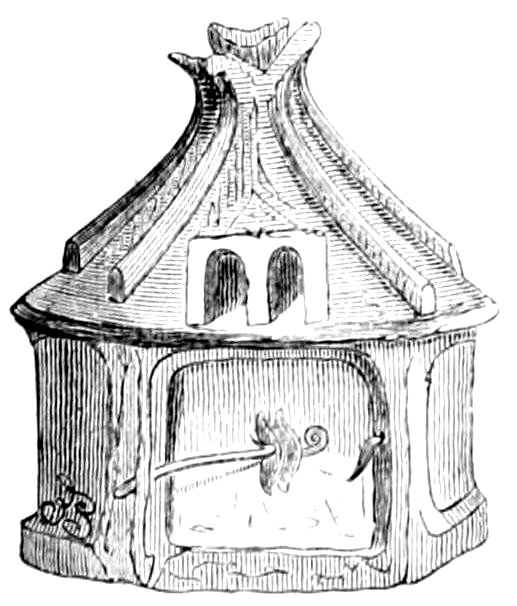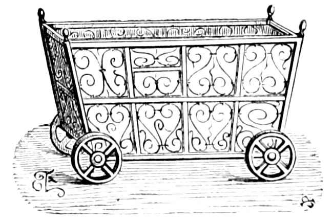 Acerra or Acerna, R. (prob. from acer, maple). A small square box with a hinged lid; a coffer used to hold the incense for sacrifices; whence its Latin names arca turalis, arcula turalis, acerra turis custos. The acerra appears on certain bas-reliefs among the sacred utensils. It is to be seen represented on the altar of the small temple of Quirinus, at Pompeii, underneath a garland, and above an augur’s wand. It is generally met with, as being carried by the officiating priests, at religious ceremonies. The attendant carried the acerra in the left hand and employed the right hand to sprinkle the incense on the flame of the altar; whence the expression libare acerra. The term acerra was also used to denote a small portable altar placed before the dead, on which incense was burnt during the time the corpse was exposed to view (collocatio). The altar was also named, from this circumstance, ara turicrema.