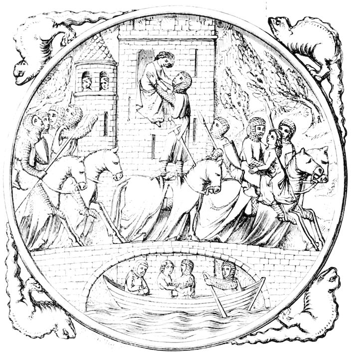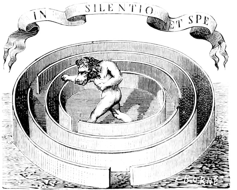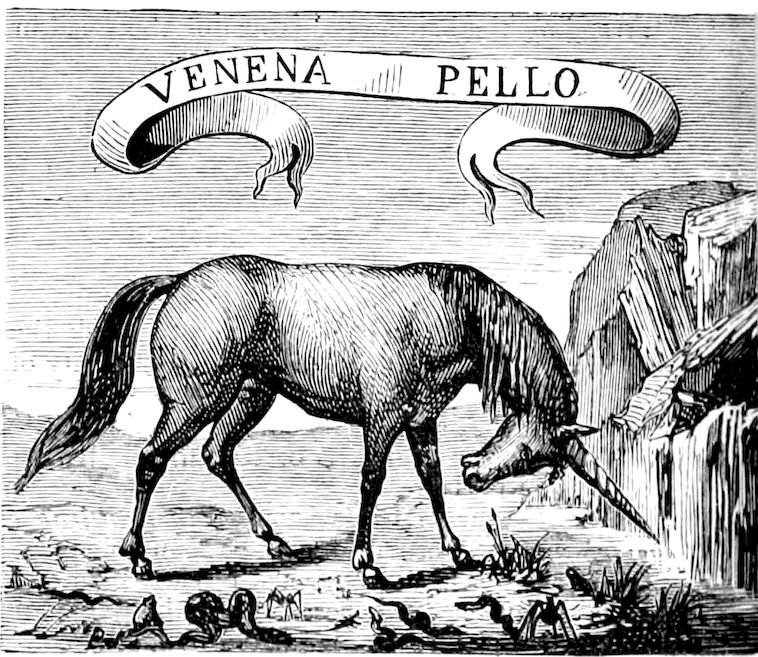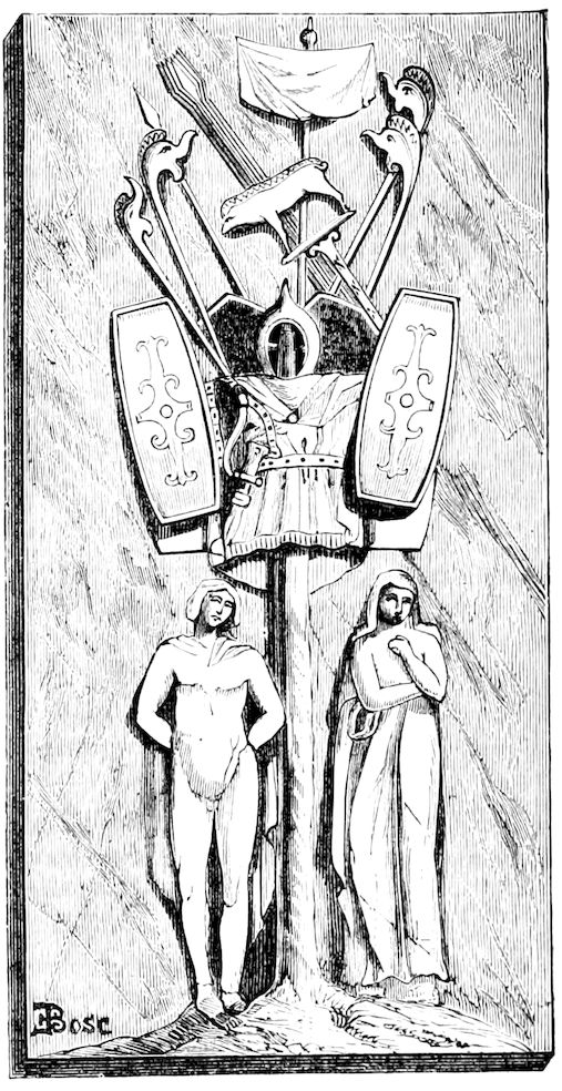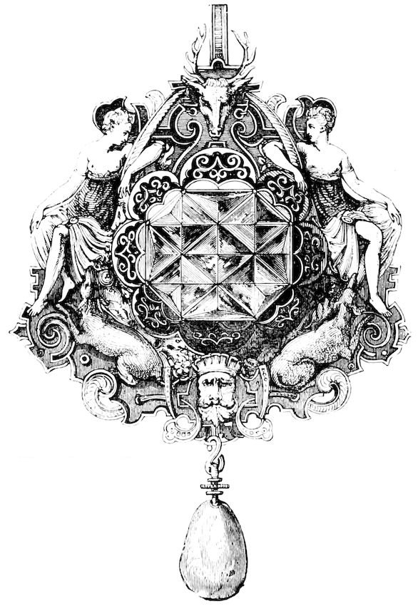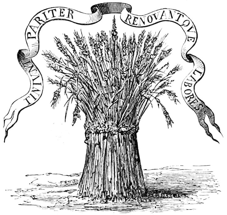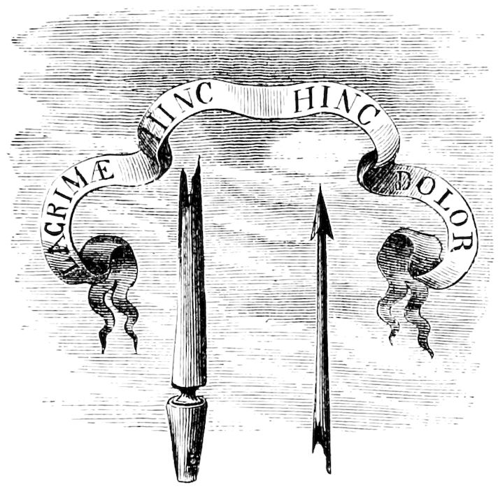 The letter Y is called the letter of Pythagoras because that philosopher made it the symbol of life. The foot of the letter, he said, represented infancy, and as man gradually rises to the age of reason, he finds two paths set before him, the one leading to good, the other to evil, portrayed by two forks of the letter. The illustration is the device of Jean de Morvilliers (+ 1577), Chancellor of France; the harrow tied to the Pythagorean Υ, a rebus on his name Mort-vie-liers—“Death and life united.” The harrow is the symbol of Death, which makes all things equal. (Fig. 701.)