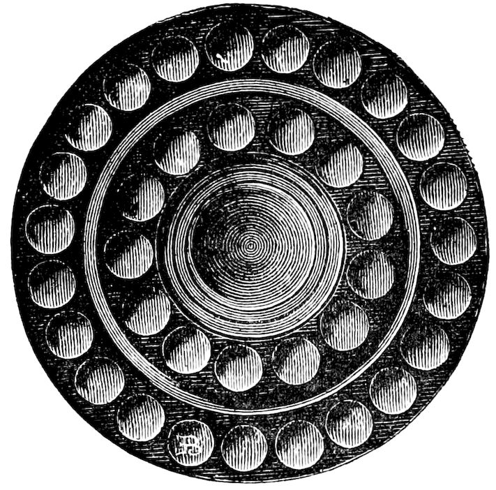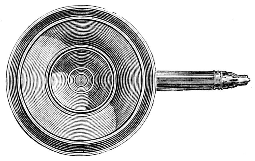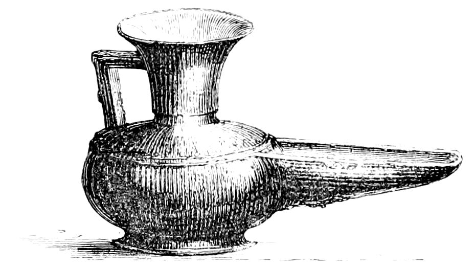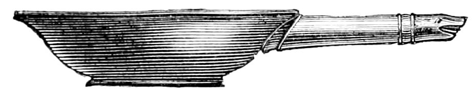 The acetabulum was also a goblet used by jugglers among the Greeks and Romans to make nutmegs disappear. By the latter these jugglers were called præstigiatores, by the former ψηφοκλέπται or ψηφοπαίκται. Lastly, we find in Pliny the Elder that acetabulum was the name given to a dry measure of capacity, equal to the quarter of a hemina or the half of the quartarius, and equivalent to .1238 of a pint. [The Greek Oxybaphon.]