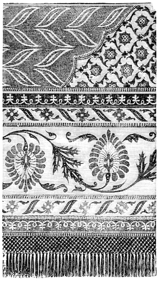 Zimarra. An Oriental robe, called in England also Samare. Described as a lady’s jacket: “it has a loose body and four side laps or skirts, which extend to the knee; the sleeves short, cut to the elbow, turned up and faced.”—Randle Holme.