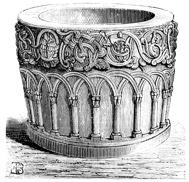 Ablutions, Chr. There were various ablutions: that of the head (capitilavium), as a preparation for unction in baptism; that of the hands (aquamanile), during Mass, &c.; that of the feet (pedilavium), including the ceremony of washing the feet of the poor, performed on Maundy Thursday, by the Pope. (Fig. 2.)