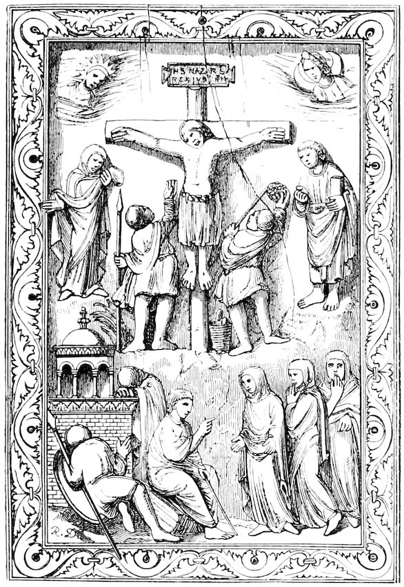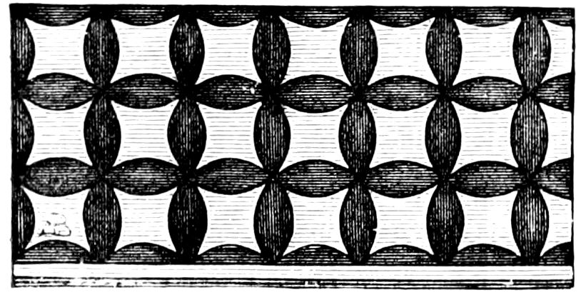 Wood-engraving or Xylography. Box-wood is the only kind that can be used. The blocks when smoothed and polished are prepared for drawing on, by rubbing the polished surface with bath brick in very fine powder mixed with water. When this thin coating is dry, it is removed by rubbing the block on the palm of the hand; its only use is to make the surface less slippery. There are four descriptions of cutting tools used in wood-engraving. The graver is not very different from that used for copper-plate, but has the point ground to a peculiar form by rubbing on a Turkey stone. Eight or nine gravers, of different sizes, are generally required commencing with a very fine one, which is called the outline tool, and increasing in size or breadth. Tinting is cutting series of parallel lines, which, when engraved, form an even and uniform tint. For this process there is a distinct set of tools called tinting tools. Gouges of different sizes are used for scooping out the wood towards the centre of the block, and flat tools or chisels for cutting it away towards the edges. The earliest known wood-engraving, “The Virgin surrounded by four Saints,” is dated 1418. A print of it is in the Brussels Museum.