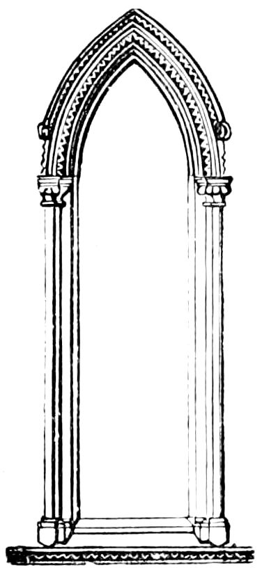 Acuminated, Arch. Finishing in a point, like a lofty Gothic roof.