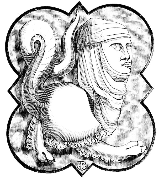 Wyvern, Wivern, Her. A fabulous creature, a species of dragon with two legs, and represented having its tail nowed. (Fig. 700.)