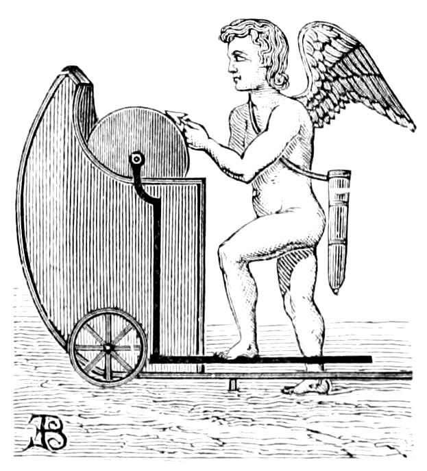 Æolipilæ or Æolipȳlæ, Gr. (αἴολος, the wind; and πύλη, an orifice). A metal vase with a narrow orifice, which was filled with water and placed upon the fire, either to make the chimney draw better, or, according to Vitruvius, to show which way the wind blew.