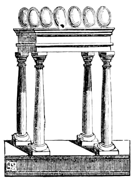 Ædicula, R. (dimin. of Ædes, q.v.). A small house, temple, chapel, tabernacle, or even shrine. Thus the name was given to a small wooden shrine, constructed to imitate the front of a temple, and in which were preserved the ancestors of the family (imagines majorum), together with the Lares and tutelar divinities.