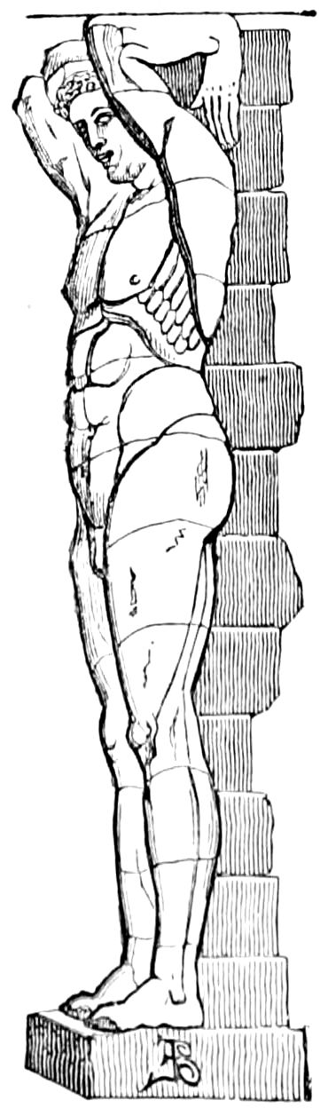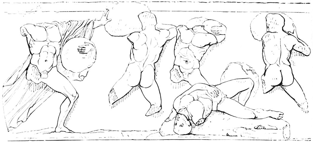 Æginetan marbles. Two remarkable groups of very early (archaic) Greek sculpture, in the Glyptothek at Munich—discovered in the temple of Pallas-Athene at Ægina, and arranged by Thorwaldsen. They illustrate “the infancy of art, which lingers round symbolic representation, and has not yet grasped the full meaning and truth of nature.” (Butler’s Imitative Art.) The anatomy of the bodies and limbs at this period is greatly superior to the expression of the heads.