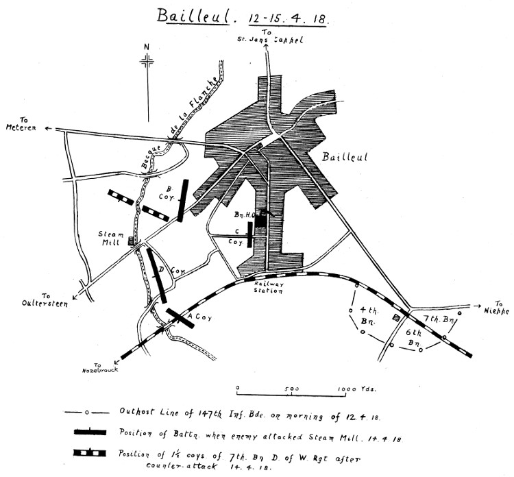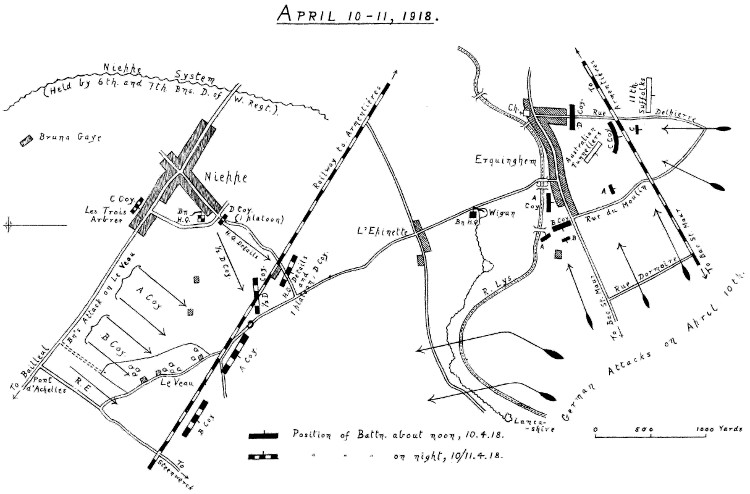 [17] Throughout the operations in April, 1918, Major A. L. Mowat, M.C, was attached to 147th Infantry Brigade H.Q. as Assistant Brigade Major.