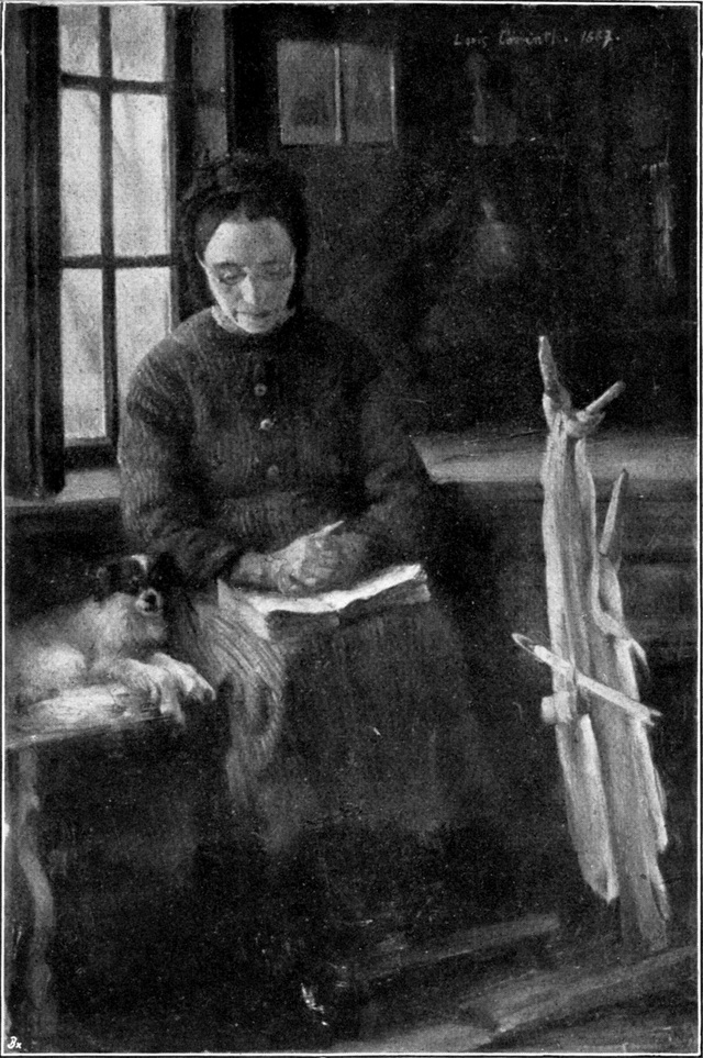 Darf man daher im ganzen die Frucht der Pariser Lehrjahre für Corinth nicht gering einschätzen, so bedeutet der nach seiner Rückkehr 1887 beginnende erneute Aufenthalt des Meisters in Königsberg nicht minder eine Zeit künstlerischer Festigung. Ob er damals in Wirklichkeit daran gedacht hat, in der nüchternen ostpreußischen Hauptstadt dauernd sein Zelt aufzuschlagen — was nach den Erfahrungen seiner Jugend immerhin einigermaßen verwunderlich wäre — entzieht sich unserer Kenntnis. Vielleicht ist in erster Linie die Anhänglichkeit an seine Familie, insonderheit an seinen stammesechten Vater die Veranlassung gewesen, sich seiner Heimat wieder zuzuwenden, und so gering auch der Zahl nach die Frucht dieser nur von wenigen Reisen unterbrochenen Königsberger Zeit gewesen ist, wir danken ihr doch einige wenige Meisterstücke, die auch heute noch im Rahmen des Lebenswerkes einen erhöhten Rang beanspruchen dürfen. Ja, diese Bilder zeigen den Künstler zum erstenmal in voller Selbständigkeit und zum Teil auf neuen Wegen. Allen Arbeiten voran ist aus dieser kurzen Epoche das ausgezeichnete Bildnis des Vaters zu nennen (Abb. 8), das sich noch heute im Besitz des Malers befindet und in seinem von dem durch das Fenster hereinbrechenden Lichte bestimmten bläulich-weißen Gesamtton als erste starke impressionistische[S. 48] Leistung gewertet werden muß. Daneben ist es als reine Porträtmalerei im Erfassen dieses stämmisch-starken Charakters so individuell wie nur irgendein Porträt dieser Zeit. Sehr vielsagend für das innige Verhältnis zwischen Vater und Sohn ist der dem Alten in die Hand gegebene, eben eröffnete Brief des Jungen, auf dem man deutlich die Unterschrift „Lovis Corinth“ lesen kann, gewissermaßen als Signatur im Sinne mancher alten Meister. — Genremalerei im reinen Sinne ist ein zweites hier wiedergegebenes Bild aus dem gleichen Jahre unter dem Titel „Sonntagsfrieden“ (Abb. 10), wo die Alte mit dem Hündchen neben sich, vom hellen Licht getroffen, auf der Bank sitzt und andächtig in der Bibel liest. Fast zu weich und sentimental ist dieses Bild für die sonst so kraftstrotzende Art des Künstlers, aber es mag von einer jener Stimmungen angeregt sein, die uns alle in Augenblicken überfallen, wo man die Lebensnöte dieser Welt erkennt. Malerisch hat dieses entfernt an Leibl gemahnende Stück prachtvolle Qualitäten, die im Sinne der kommenden Entwicklung besonders hervorgehoben werden müssen.
