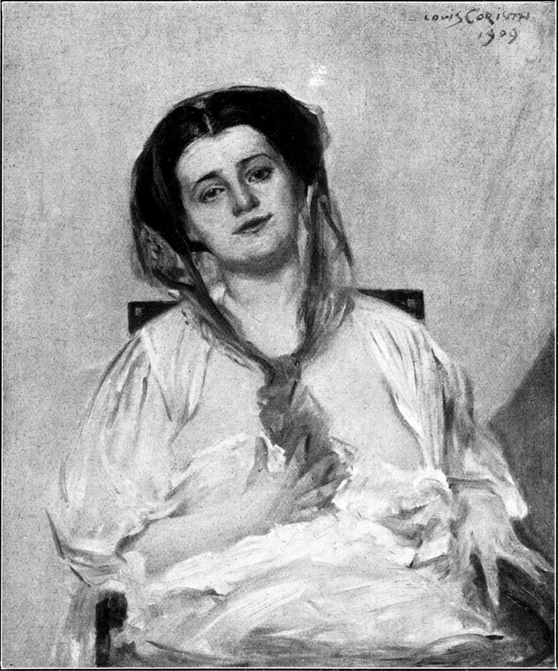 Berlin aber schenkte ihm vor allem einen Kreis innerlich verwandter Kollegen; es hat dem Hagestolzen sogar die viel jüngere sympathische Gattin in der Gestalt[S. 67] der begabten Malerin Charlotte Berend zugeführt, die eine Zeitlang seine Schülerin gewesen ist. Nur in Berlin ist Corinth auch als Lehrer denkbar gewesen, weil diese alles Neue begierig suchende Stadt auch mit Sicherheit der rechte Nährboden für einen stolzen künstlerischen Nachwuchs sein mußte. Und so ist auf diesem Boden des Meisters Schaffen nicht nur selbst ungeheuer reich gewesen, sondern es hat auch in höchstem Maße fruchtbar und anregend auf die jüngere Generation gewirkt.
