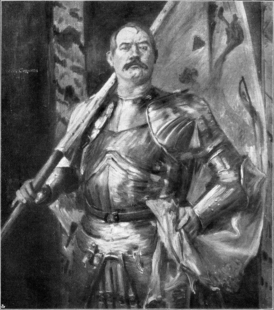 Darf deshalb in diesem Sinne von der Modernität der Corinthschen Kunst gesprochen werden, weil ihr, ganz unabhängig von den Motiven, ein unerhört starkes malerisches Bewußtsein und zugleich Bekennertum eigen ist, so verdichtet sich der Begriff noch in dem Gefühl, wie gerade das Werk dieses Meisters reine Kunst verschließt, die an Zeitgrenzen überhaupt nicht gebunden ist. Man wird einige seiner Porträts sehen, z. B. den Florian Geyer, die des literarischen Entstehungsgedankens längst spotten, die etwa wie der Ritter Willem von Heythusen der Brüsseler Galerie, den wir einem Frans Hals danken, weniger den Ausdruck eines individuellen Menschenschicksals als vielmehr einen Menschen in seiner Potenz[S. 20] — als Typ im allgemein Menschlichen festgehalten haben. Und ganz ähnlich ergeht es uns vor anderen Werken des Meisters, die wie die Szenen der „Kreuzigung“ oder selbst die burleske „Erziehung des Zeus“ unserem Geschlecht über die Spanne der Jahrhunderte hinaus Gedanken schlechthin vermittelt haben, die immerfort symbolisch sein werden. Ja solche Bilder sind gerade bei Corinth fast ohne jede Voraussetzung, die sonst wohl die Tradition gibt, geworden. Sie sind nur das Ergebnis der schöpferischen Persönlichkeit. Und das Neue liegt bei ihnen weniger im Motiv als in der Art, wie die künstlerische Phantasie den Blick auf allgemein menschliche Dinge hinlenkt.