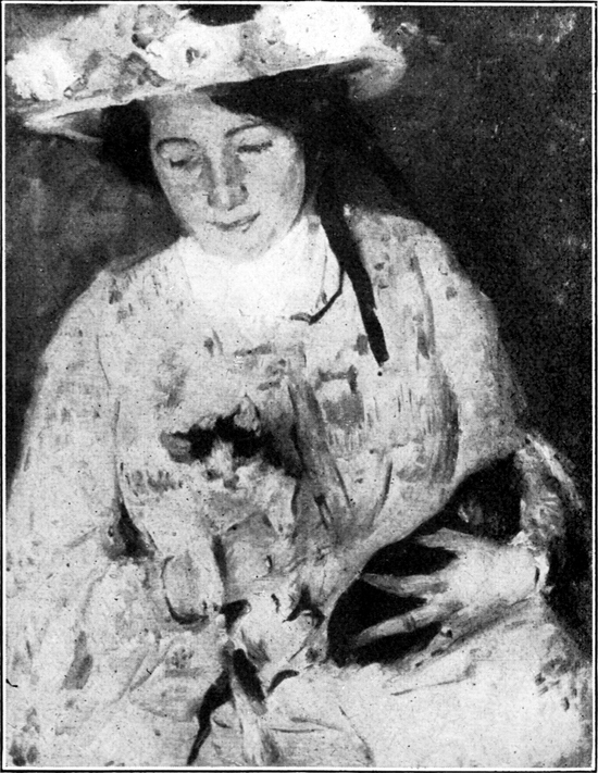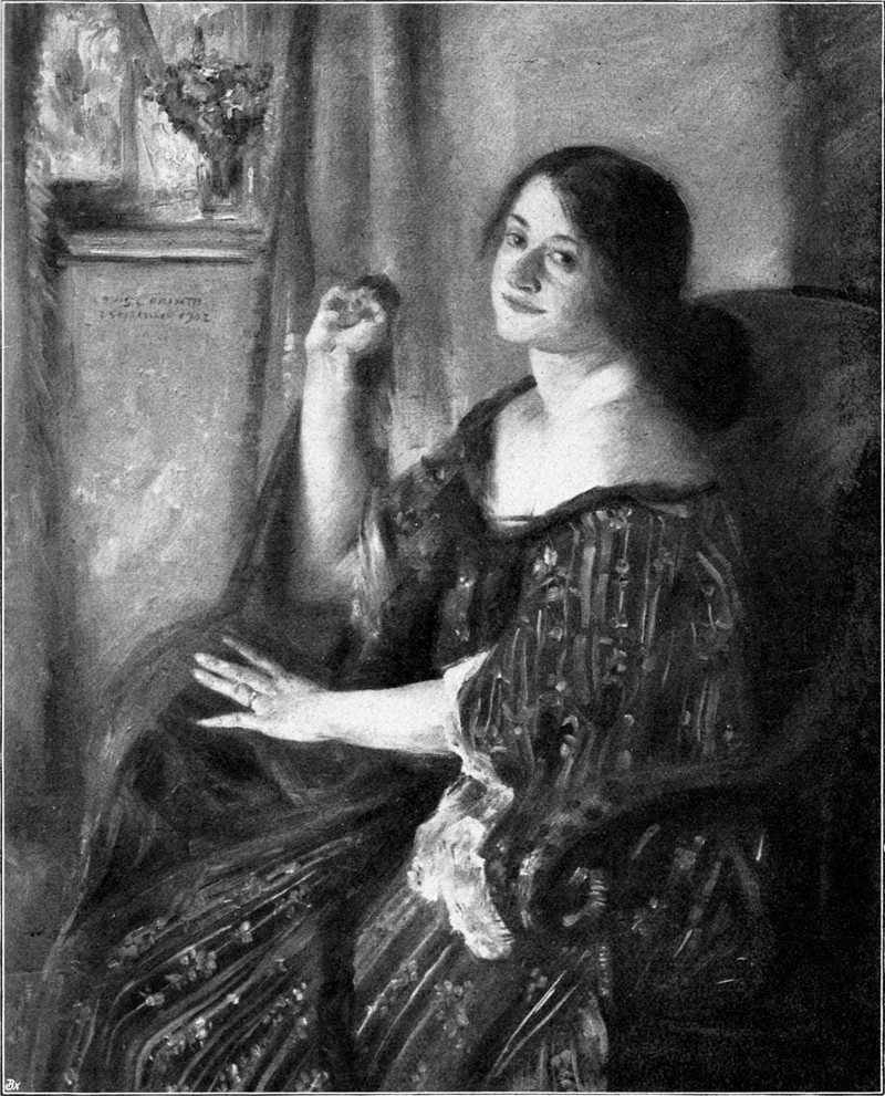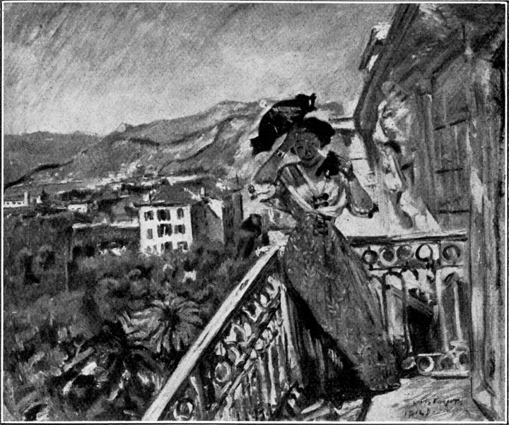 Denn wenn einer von unseren modernen deutschen Künstlern eine geborene Kämpfernatur ist, dann ist es Corinth. Indem er sich mit seinem Schaffen von Anbeginn auf die Seite jener kleinen mutigen Schar stellte, deren Ehrgeiz niemals nach offizieller Anerkennung gedurstet hat, wurde er eine der Hauptstützen der Berliner Sezession, die ihn auch heute noch als eigentlichen Führer anerkennt. Freilich hat Corinth auch für die Folge seine alten, langjährigen Beziehungen zu München nicht verleugnet. Die dortige Sezession hat ihm stets eine ehrende Aufnahme bereitet, und er ist gern und oft auch zu längerem und kürzerem Besuch nach München zurückgekehrt. Bei einer solchen Gelegenheit sind z. B. das Bild der Familie des Dichters Max Halbe (Abb. 44) und ein Porträt der anmutigen Gattin Halbes entstanden. Vor allem aber war es der Aufenthalt an den bayrischen Seen, der Corinth immer wieder nach dem Süden geführt hat.