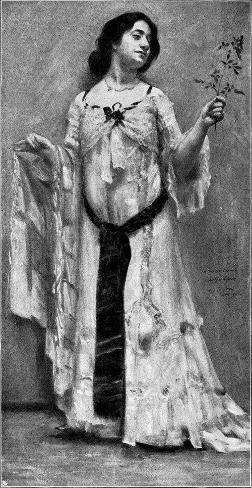 Trotzdem aber bezeichnet die im Jahre 1900 erfolgte Übersiedlung des Meisters nach Berlin den wichtigsten Wendepunkt in seinem Leben, und es ist ganz augenfällig, wie von nun an nicht nur seine Produktionsfreudigkeit im großen zunimmt, sondern wie sich auch die künstlerischen Kräfte immer freier entfalten. In der Beziehung mutet die gegen Ende 1899 gemalte große „Salome“ im Besitz der Frau Carl Toelle in Barmen wie ein erster Auftakt auch zu einem neuen koloristischen Stil an, nicht nur weil die Farbigkeit rhythmisch mehr gesteigert ist, als auf früheren Bildern dieser Art, sondern weil auch der Pinselstrich an kaum verkennbarem Schmiß gewonnen hat. Aber auf diesem Werke überrascht auf der anderen Seite nicht minder auch die Diskretion, mit der Corinth hier eines der blutrünstigsten Themata der Kunstgeschichte behandelt hat. Nichts wild Perverses schlummert in dieser Salome, sondern — sähe man nicht den Kopf des Täufers — so käme man fast auf die Vermutung, Corinth habe hier eine jener morgenländisch heiteren Szenen aus „Tausendundeiner Nacht“ gestaltet, als sei es ein lustiges Spiel, den Vorstellungen eines fernen Traumlandes entnommen, was sich hier vor unseren Augen enthüllt (Abb. 46). Mehr Hauptaktrice in der Johannestragödie im wahrsten Sinne des Wortes als diese mit einem Unterton des Dekorativen inmitten einer orientalischen Szene behandelte blutdürstige Königstochter ist jene Eysoldt als Salome, die er später nach dem Leben gemalt hat (Abb. 51).