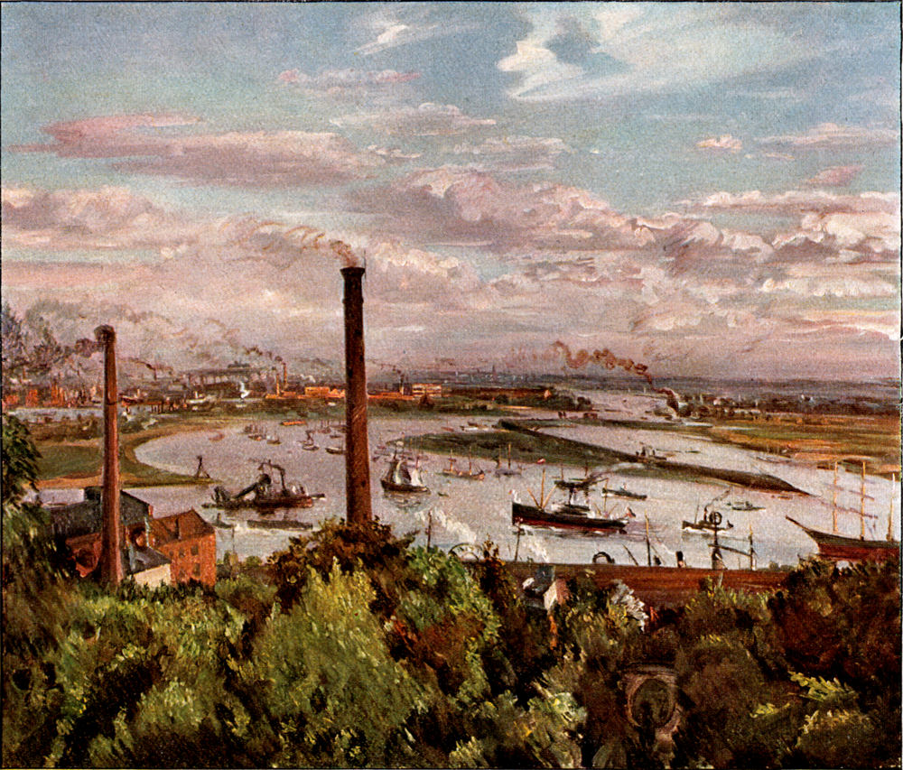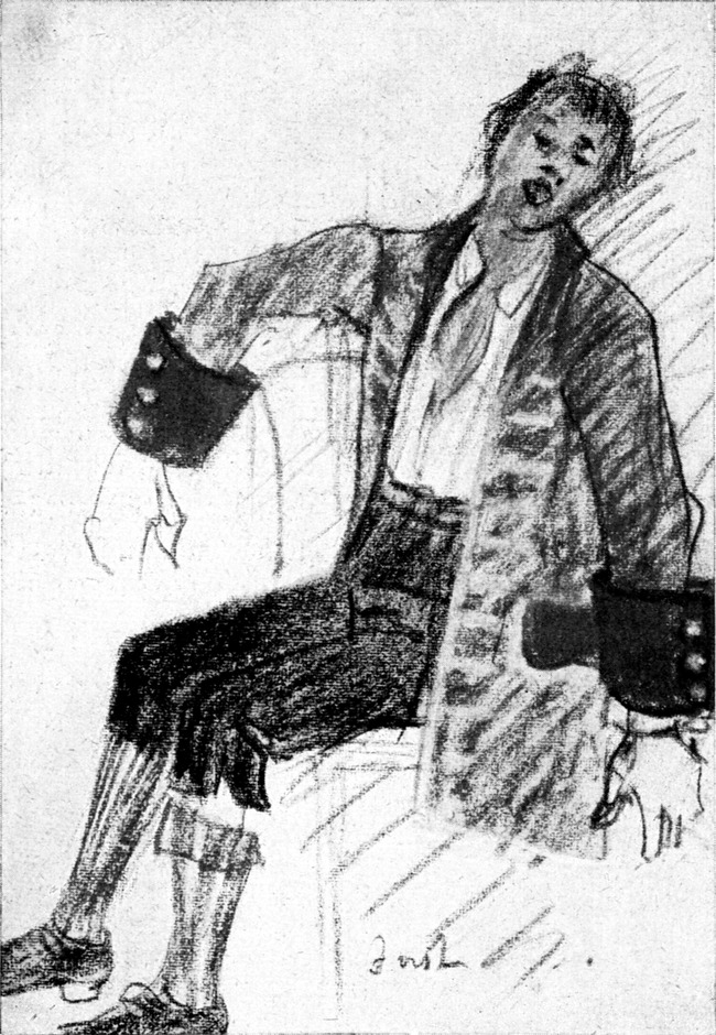 So streng auch sonst die Erziehung des kleinen im Sinne der Mutter spät[S. 26]geborenen Nachkömmlings war, so sehr scheinen doch die Eltern und ganz besonders der Vater an dem Jungen gehangen zu haben. Die älteren Stiefbrüder waren alle Handwerker geworden; er, der Jüngste, der vielleicht dem väterlichen Stolz wie „von höherer Art“ erschien, sollte wie Rembrandt, des Müllers Sohn von Leiden, das gelehrte Studium ergreifen, und so kam der Junge mit dem achten Lebensjahre auf das Gymnasium nach Königsberg. Er wurde bei einer Schustersfrau, der Schwester seiner Mutter, untergebracht und trat nun — reichlich verschüchtert — in diese neue Welt ein. „Alles war dem kleinen Jungen neu: die feinen Jungens in der Klasse, das ewige Hochdeutschsprechen und die fortwährenden Nörgeleien über seine falsche Aussprache, endlich die vielen großen Häuser. In seinem Kopf ging ein ganzes Räderwerk herum, wogegen die Lohmühle zu Hause nichts war.[S. 27] Am besten gefiel es ihm noch beim Ohm am Schustertisch. Hier konnte er, ganz ernst mit dem Ohm und den Gesellen, ebenfalls auf einem Dreibein sitzend, hölzerne Speilen in Reste von Sohlenstücken hineinhämmern.“ So erzählt Corinth selbst von den Eindrücken dieser neuen Umgebung, und er hat in diesem Kapitel seines Buches ein Bild unverwüstlich humorvoller Wirklichkeitsmalerei gegeben, das wie ein Gemälde des alten Jan Steen anmutet. Leider starb der gute Onkel schon wenige Monate nach der Ankunft des jungen Lovis, und nun begann eine schwere Zeit für den Knaben. „Die Schusterstühle und der Tritt und die Glaskugel, die so komisch hell machen konnte, wurden weggeholt —. Das Leben mit der Tante wurde einförmig. Sie knauserte an allen Ecken und Kanten.“ Mit köstlichem Humor schildert Corinth, wie er Einkäufe machen mußte, beim Fleischer z. B. „für anderthalb Dittchen Karbonade“ einholte, die ihm die Ladnerin aus reinem Mitleid verkaufte, da der Vater wohl von der Fabrik sei. Wie er sich vor den Kameraden aus der Klasse schämte, wenn er die selbst gekneteten Brote zum Backen in den Laden des Bäckers bringen mußte, und wie er endlich gegen die Tante zu revoltieren begann, als er Eimer von der Bleiche nach Hause tragen[S. 28] mußte. In diesen Momenten packte ihn bitteres Heimweh, Tränen stürzten ihm aus den Augen, aber er mußte aushalten. — Während bei der Tante der gute Familienklatsch an Sonntagnachmittagen umgeht, sitzt Lovis still dabei und[S. 29] zeichnet. Das besorgt er auch, wenn die Tante glaubt, daß er Schularbeiten mache; es ist sein einziger Trost, „denn längst war ihm die Schule und ebenso die Wohnung der Tante zum Greuel geworden.“ Aber das Leben am Pregel interessiert ihn gewaltig, und die vielen Schiffe und Kähne, die in seiner Einbildung nach fernen Ländern, zu Menschenfressern, Indianern und Malaien hinsteuern, erregen seine Phantasie, und so ist auch Königsberg mit seinem bunten Durcheinander, das wie ein kleines Amsterdam im fernen Osten anmutet, nicht ohne Einfluß auf die künstlerische Entwicklung des Knaben gewesen. Am Schloßberg sah er die Soldaten exerzieren und an der Fischerbrücke hörte er die Händlerinnen ihre Waren laut anpreisen. Die Tante zog eines Tages fort aus ihrer Wohnung am Pregel zu ihrem Schwiegersohn. Der Knabe zog mit. Aber in der Schule wollte es durchaus nicht glücken. Der Ordinarius berichtete dem Vater nach Hause, daß der Junge immer mehr auf Abwege gerate, doch das änderte wenig an der Tatsache, daß dem jungen Menschen „der Bücherranzen immer schwerer und die Schulbänke immer härter wurden“.