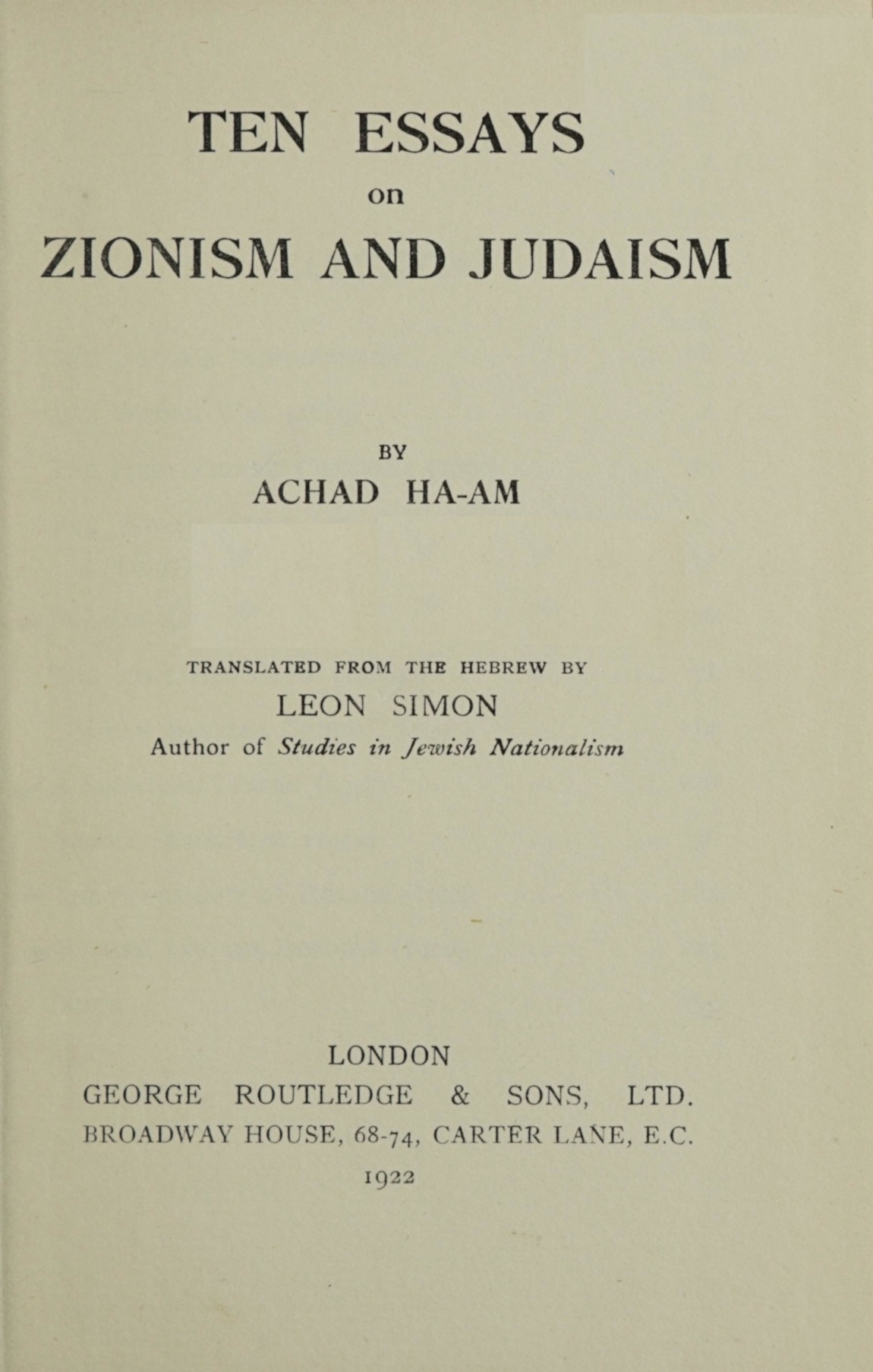 The Project Gutenberg eBook of Ten Essays on Zionism and Judaism, by Achad Ha-Am