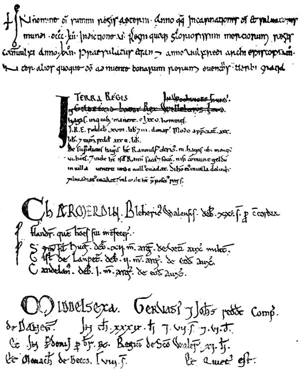 No subject has been more studied than Domesday Book. Translations, explanations and dictionaries have been written upon it. These are[131] very valuable as explaining the obscure points and giving the modern acreage, as compared with the carucate, bovate and hide. To understand a county history these must be closely compared. Many of the manors named in the old Survey are now lost. It must be remembered that waste lands and commons were not always mentioned, nor were churches or any property which was not taxable. For this reason Domesday often disappoints us by its meagreness of detail, but it forms the beginning or basis from which an inquiry may be started, and to pursue it through the centuries which followed, the public rolls and manuscripts are the only means of information; of these Domesday will prove valuable as a key.