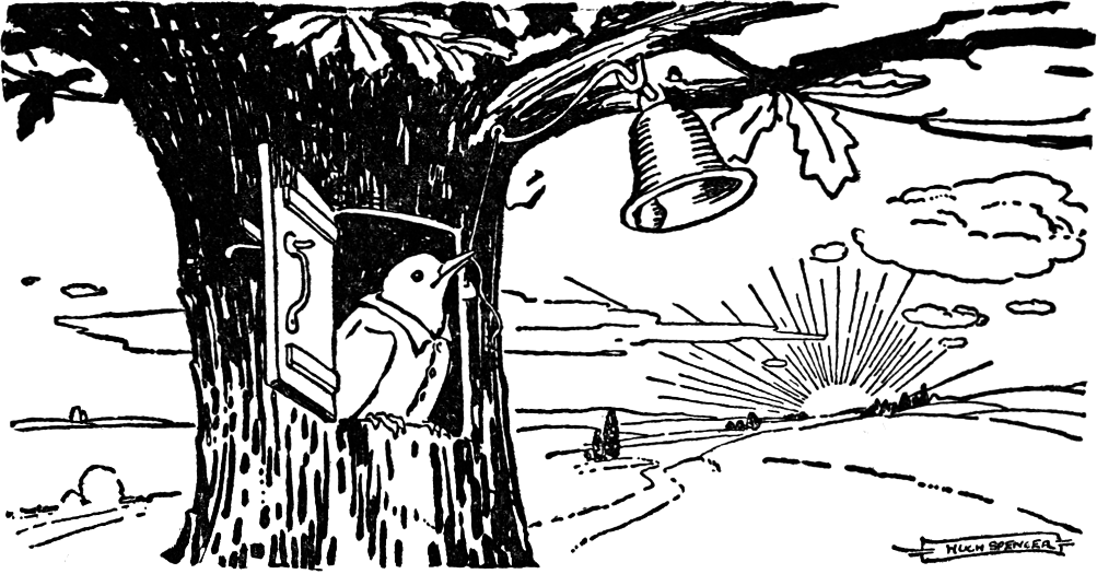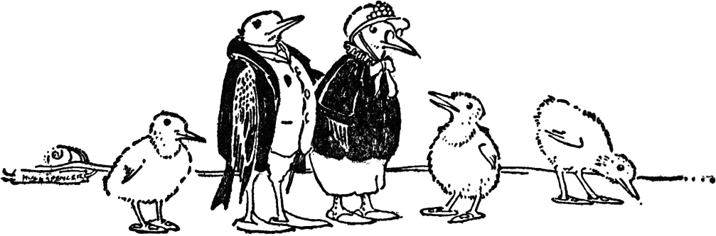 He said, “You remember that the Heron was to go with you and show you a short cut through the marshes. Perhaps it is just as well for you that he had appendicitis, as he always stops a long time to get his evening meal. Then if he is startled he flies at once to a tree. Moreover,[Pg 116] he is rather apt to pick a quarrel. It is thought by some of the best authorities in Birdland that his appendicitis came from eating too heartily one night and quarreling violently afterwards.”