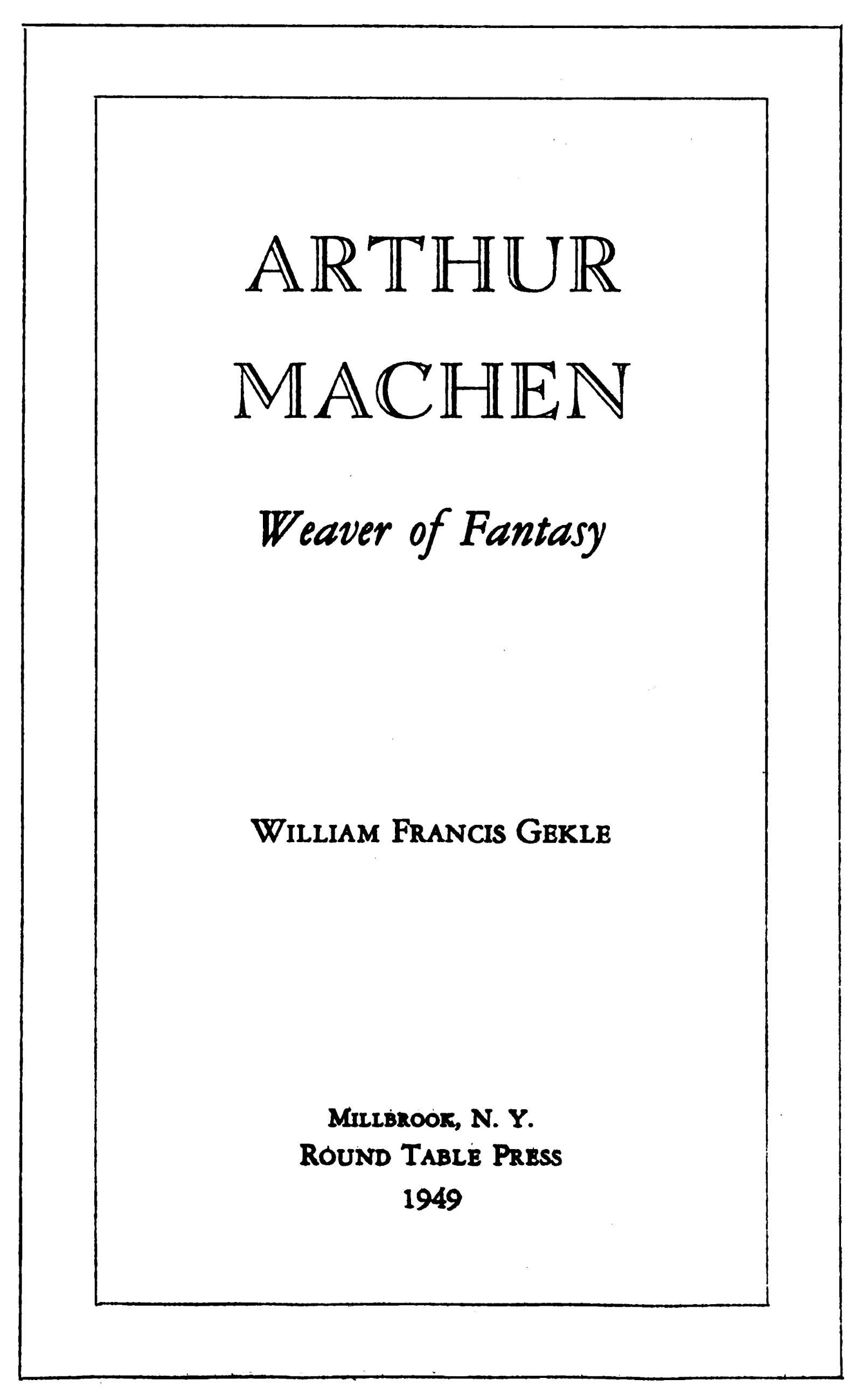 I cannot recall whether it was James Branch Cabell or Vincent Starrett who first directed me to the works of Arthur Machen. I am deeply grateful to both, not only for this, but for their encouraging letters concerning my book.