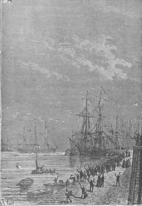 Some time later the steamer sped rapidly through the waters of the Atlantic; the American coast disappeared in the darkness, and the distant lights which shot across the horizon indicated that the attack was general between the batteries of Morris Island and the forts of Charleston Harbor.