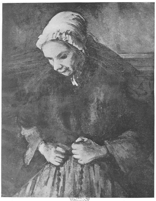 [G] «...Son rêve, dit M. A. Vollard, eut été de faire poser ses modèles nus en plein air; mais c’était irréalisable pour beaucoup de raisons... Aussi, quelle ne fut pas ma surprise quand il m’annonça, un jour, qu’il voulait faire poser une femme nue! «Comment, Monsieur Cézanne, ne puis-je m’empêcher de m’écrier, une femme nue?»—«Oh! Monsieur Vollard, je prendrai une très vieille carne!» Il la trouva d’ailleurs à souhait et, après s’en être servi pour une étude de nu, il fit, d’après le même modèle, mais cette fois vêtu, deux portraits qui font penser à ces parents pauvres que l’on rencontre dans les récits de Balzac...»