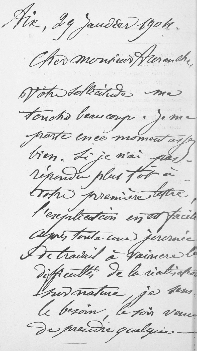 Je n’ai jamais fait beaucoup de visites et je trouvai plus commode d’envoyer par la poste le mot de Cézanne à l’illustre écrivain.