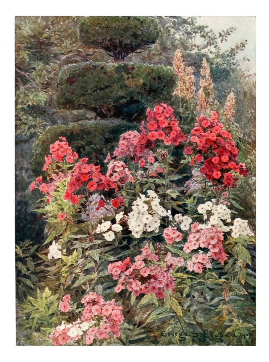 By August we are in autumn; and it is the month of the tall Phloxes. There are some who dislike the sweet, faint and yet strong scent of these flowers; to me it is one of the delights of the flower year.