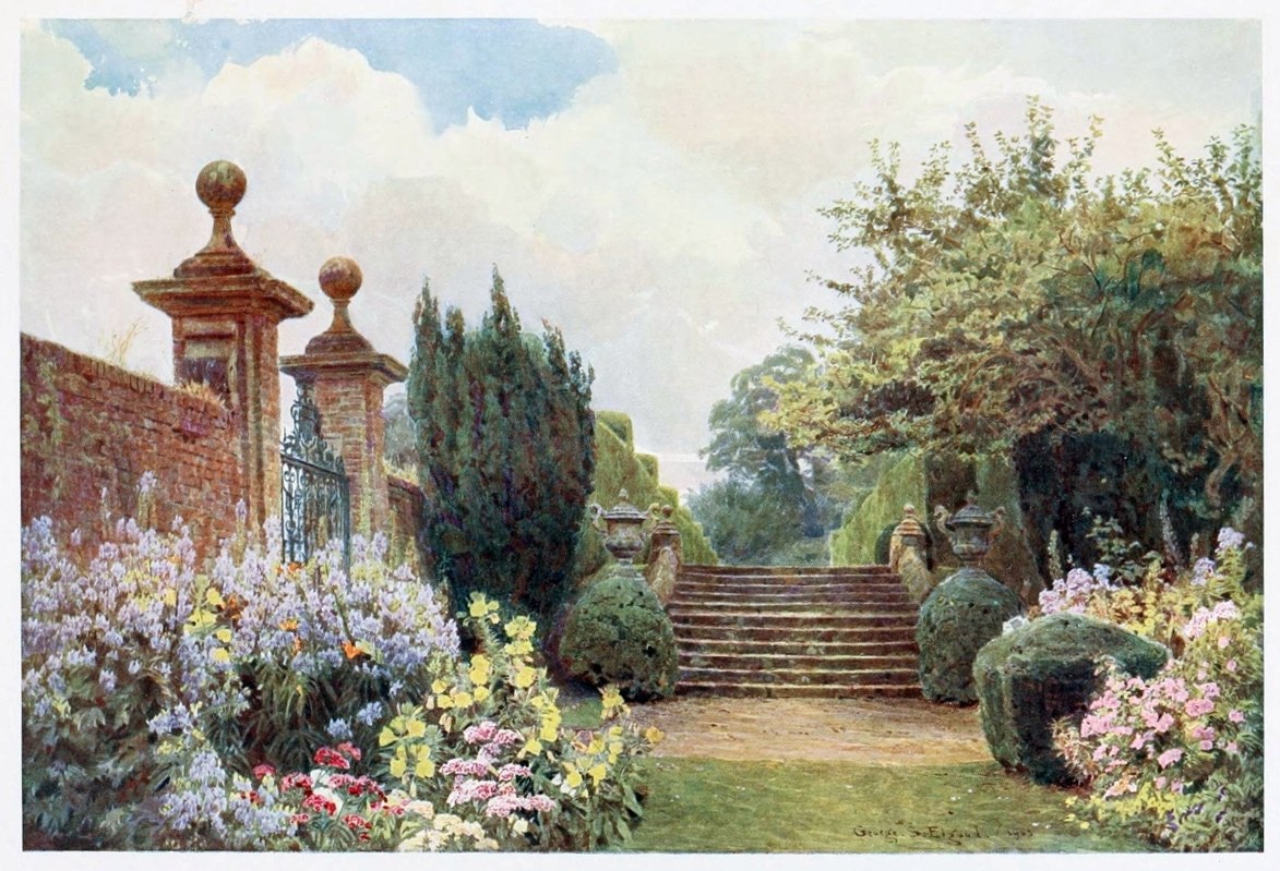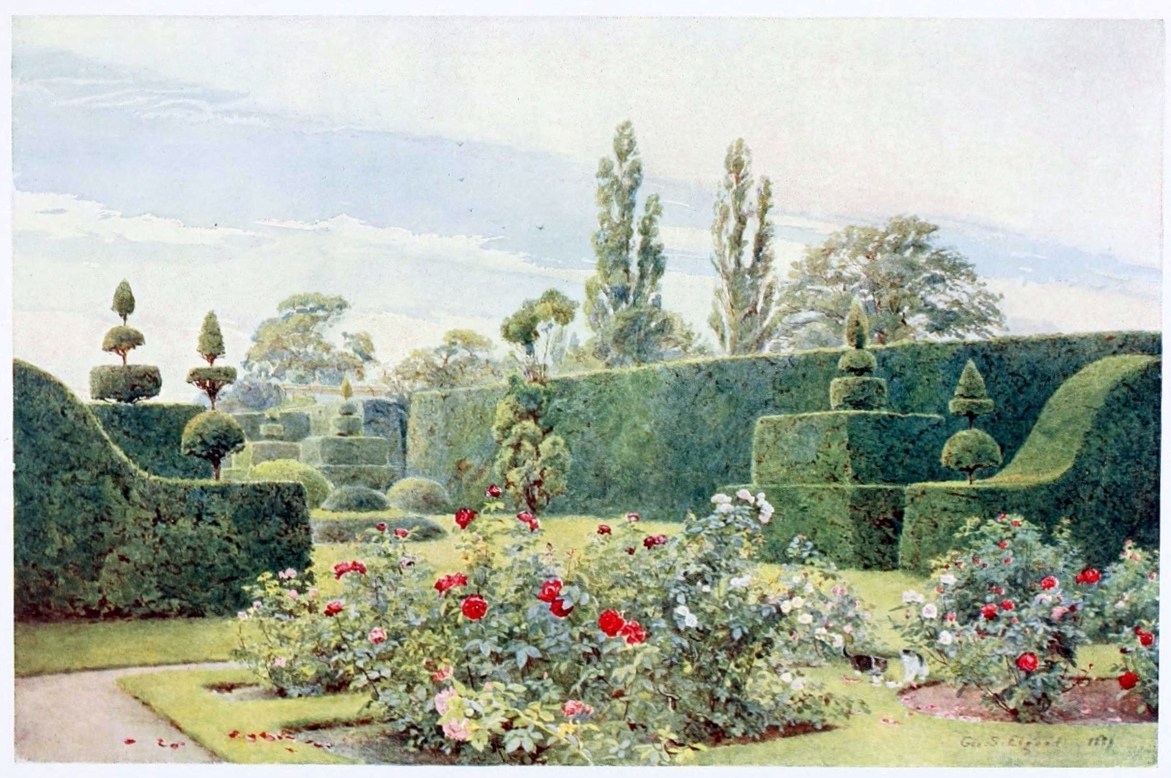 The English gardens in which Mr. Elgood delights to paint are for the most part those that have come to us through the influence of the Italian Renaissance; those that in common speech we call gardens of formal design. The remote forefathers of these gardens of Italy, now so well known to travellers, were the old pleasure-grounds of Rome and the neighbouring districts, built and planted some sixteen hundred years ago.