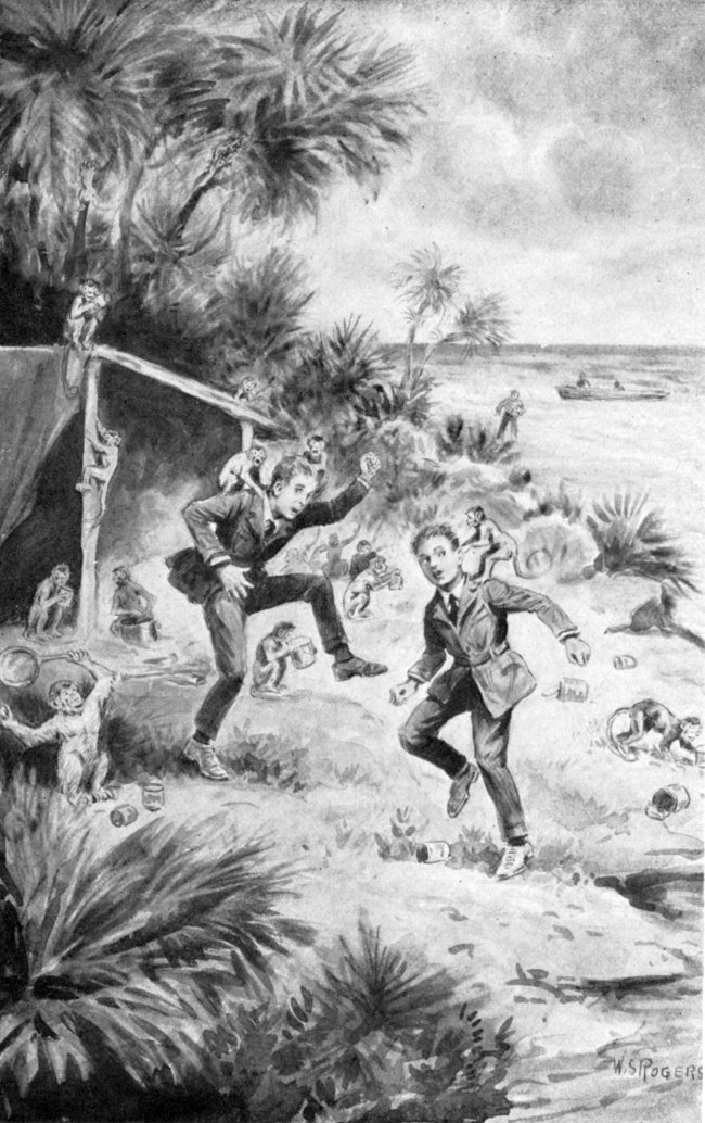 “Gee! what of the monkeys we left tied up?” questioned Jack, suddenly.