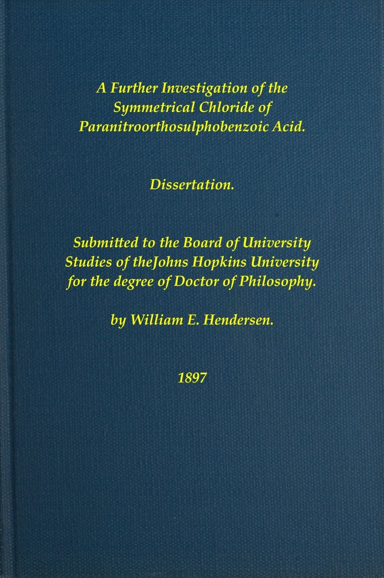 The Project Gutenberg eBook of A Further Investigation of the Symmetrical Chloride of Paranitroorthosulphobenzoic Acid, by William E. Henderson