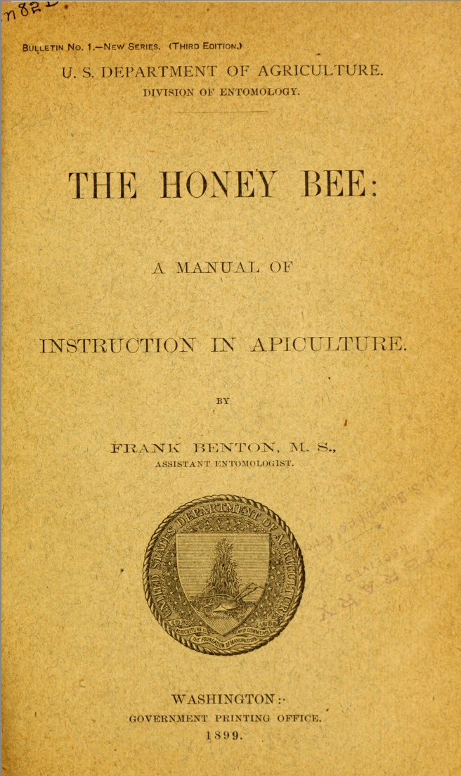 Sir: I have the honor to transmit herewith for republication a manual entitled, The Honey Bee: A Manual of Instruction in Apiculture, by Mr. Frank Benton, who has been in charge of the apiarian work of this Division for several years. The constant demand for information concerning bee culture for a long time indicated a need for such a public manual, and the work was begun and nearly completed under the direction of my predecessor, Dr. G. V. Riley. The manuscript was submitted September 20, 1895, and the edition of 1,000 copies was soon exhausted. In April, 1896, Congress ordered a reprint of 20,000 copies, in which some corrections and additions were made by the author. He has also taken advantage of the reprint of another (the third) edition to make some slight additional changes.
