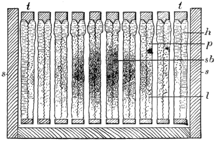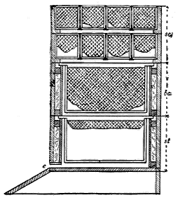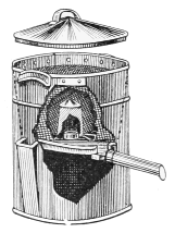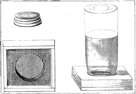 All of these symptoms may, however, be present when no foul brood exists; but if, upon opening some of the cells whose caps are sunken or slightly punctured, a brown, ropy, putrid mass is found, which, when lifted on the end of a sliver of wood, glides back into the cell or strings down from the mass like thick sirup, it is pretty certain that foul brood is present. Caution is necessary or it maybe spread all through the apiary. The hands, as well as all tools used about the infected colony, should be cleansed by washing in a solution of corrosive sublimate (one-eighth ounce dissolved in 1 gallon water) before going to another hive. If but few are found diseased they should be burned at once—at night, when all the bees are at home. If all or nearly all are affected, or if the disease does not seem virulent and other apiaries in the neighborhood are not endangered thereby, a cure may be attempted. Removal of all of the combs and confinement of the bees in an empty box, obliging them to fast until some drop from hunger, followed after releasing them by liberal feeding, will frequently effect a cure, as indicated many years since by Mr. M. Quinby. The hives may be disinfected by washing in carbolic-acid water and used again. A second removal of the bees and fasting may be necessary in some cases. It will also be well to feed medicated sirup—1 part of carbolic acid, or phenol, to 600 or 700 parts of sirup. Many omit the fasting, but destroy all combs and frames and supply comb-foundation starters, removing four days later all combs built and giving a second lot of starters. It is well to supplement this treatment with feeding of medicated sirup. Phenol having been suggested to Professor Cheshire as a remedy, he experimented until he found that if a sirup containing 1 part of phenol to 400 or 500 parts of the food be poured in the cells adjacent to the brood, and the diseased brood, after brushing off the bees, sprayed with a solution of 1 phenol to 50 water, a cure was speedily effected. The great risk of spreading the disease, as well as the time and expense which a cure by drugs by the fasting process involves, will cause immediate destruction to be resorted to as the cheapest in the end if taken in time.