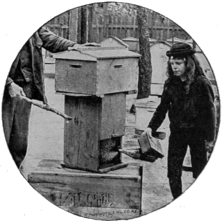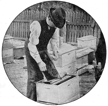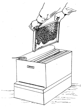 If robbing has begun it may sometimes be stopped by throwing coarse grass or weeds over the entrance of the hive attacked, or by leaning a pane of glass against its front, the entrance being, of course, contracted as indicated above. These plans tend to confuse the robbers for a time, and meanwhile the rightful occupants of the hive may be able to organize for defense. If convenient the colony attacked may be moved a distance of a half mile or more and placed as far as possible from other apiaries until it can recuperate. Another plan in extreme cases is to put the colony in a dark cellar for a few days, confining the bees to the hive with wire cloth, so as to allow plenty of ventilation, as described under the head of "Moving bees." When brought out of the cellar it is well to place the colony on a new stand, apart from the other bees, contract the entrance, and lean a board against the front of the hive. It is also safest to bring it out late in the day, even just at dusk, so the bees will begin flying from it gradually and not attract the attention of robbers. It may be well, when removing a colony from its stand to save it from robbers, to put in its place a hive with combs containing a little honey and pollen. The robbers, instead of scattering and entering adjacent hives, will continue to visit the same stand, their numbers gradually diminishing as the honey gives out and the pollen is sucked dry. If meanwhile the entrances of adjoining hives have been contracted and these colonies are fairly strong and in normal condition, individual robbers will be successively repulsed as they appear. Quiet will thus be eventually restored.