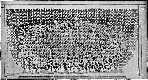When forage is scarce in the field, bees belonging to different colonies often wage fierce wars over the stores already in hives. Thousands are killed and the victors relentlessly carry off as booty every drop of honey from the vanquished hive, leaving its bees to starve miserably. A great stir and loud buzzing in the hive of the conquerors attests their rejoicing over the ill-gotten gains. Nor have they any code of morals which inclines them to select as opponents forces equal in strength to their own. With them "all's fair in war." Their only object is plunder, and they therefore select the most defenseless, a colony disorganized through loss of its queen being an especial mark for a combined attack.