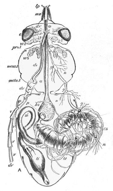 Robber flies, dragon flies, etc.—Several species of Asilus and related predaceous Diptera do not live upon injurious insects alone, but also capture and devour honey bees. They are more destructive in the South than elsewhere. The same is true of the neuropterous insects known as mosquito hawks, dragon flies, or devil's darning needles. There seems to be no remedy for any of these except that of frightening them away when noticed about the apiary. The "stinging bugs," belonging in the hemipterous family Phymatidæ, often capture and destroy workers as they visit the flowers. No remedy is practicable.