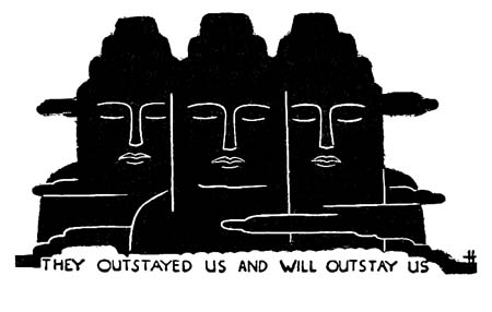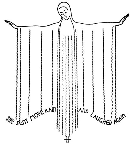 As Vachel Lindsay was an art student before he was a poet, and wrote his first verses as scrolls to be illuminated below emblematic figures, we naturally discussed emblems and emblematic art and hieroglyphics as we tramped together. The emblems in this book are an attempt to express that side of our mutual experience. They have been done by my friend, Vernon Hill, who drew once that very precious work, “The Arcadian Calendar.”