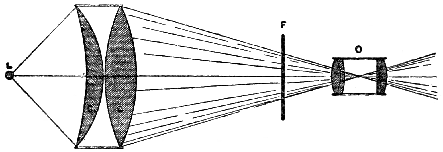 Fig. 22—The Optical Principle of Projection with the Bettini cinema-à-plaque.