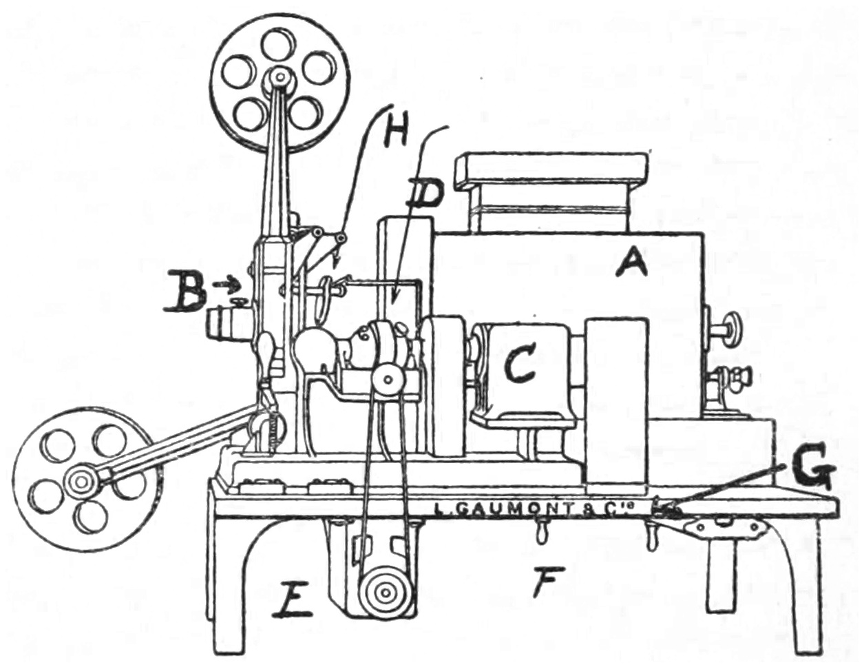 Unfortunately, the feeling against the moving picture has not been entirely eliminated, despite its tremendous popularity. Once an energetic Board of Education realises the possibilities of cinematography as a supplement to the information conveyed by text-books and manuals, the film manufacturers will hasten to supply the demand thus created. The last obstacle will have been removed; for the field presents no special mechanical difficulties, the only serious one having been removed by the discovery316 of the non-inflammable film. The perfecting of this film has obviated the necessity of confining the installation within an iron box—a requirement which militated very appreciably against the introduction of the cinematograph into schools.