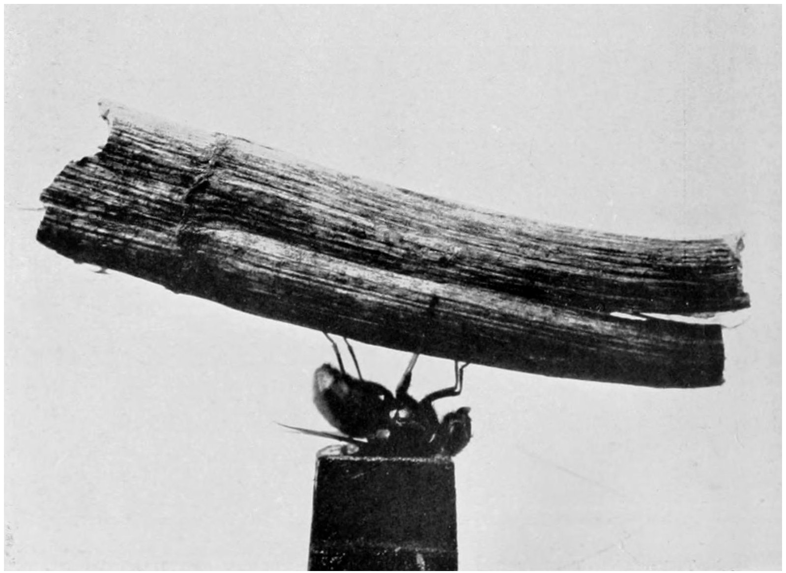 The familiar experiments with the magnet and iron filings are treated simply and with endless variety. If313 the pupils see the teacher perform the manipulations with filings and magnet in the usual way, the experiment conveys no tangible idea, and interest is not greatly aroused. But when the same magnet is thrown upon the screen in movement, and is ten feet or so in height, while the iron filings are so magnified that they resemble not dust, but thorns or long pins, a more convincing and indelible impression is conveyed.