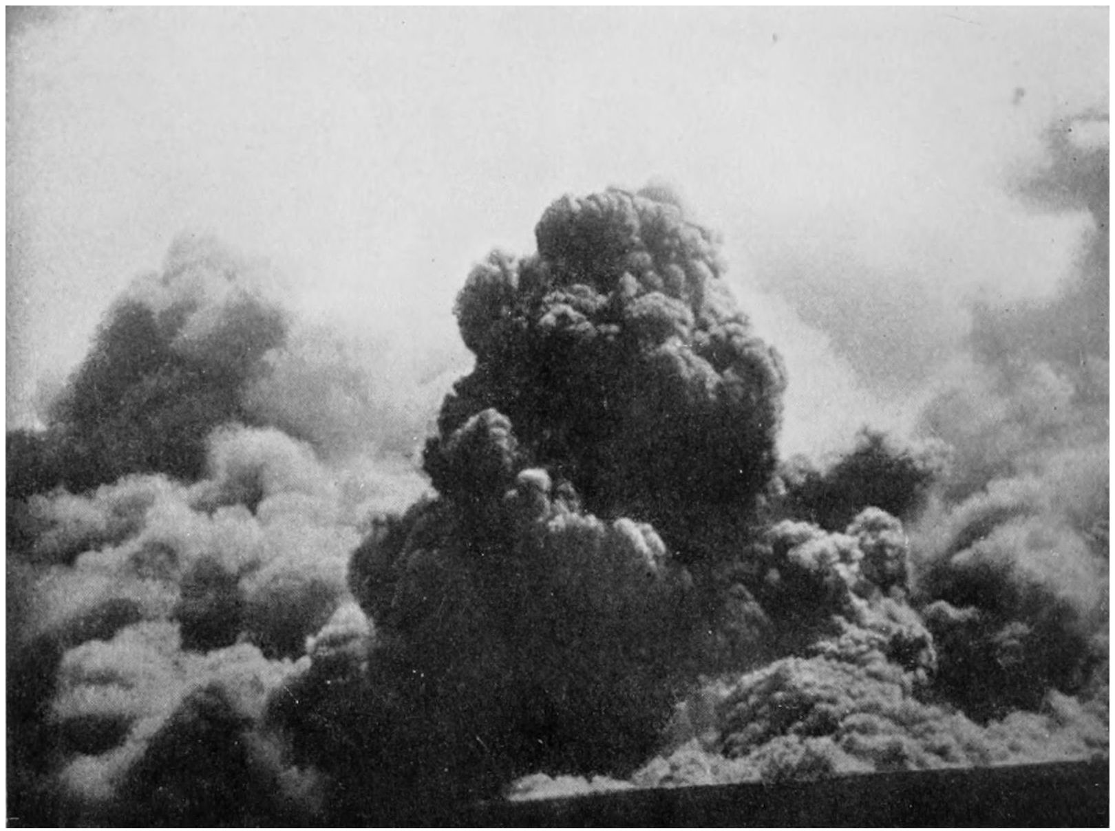 The plumes of smoke as seen from the Observatory. One of the most daring and striking cinematograph films ever taken.