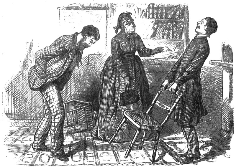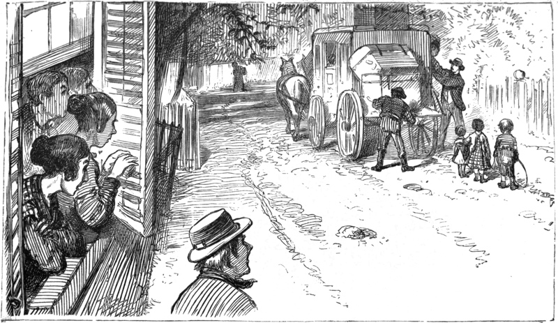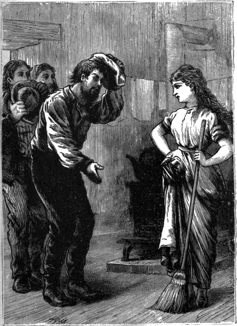 The judge extracted a small valise marked “Huldah Brown,” offered his arm, and he and the teacher walked off before the astonished crowd as naturally as if the appearance of a modest-looking young lady was an ordinary occurrence at the Flat.