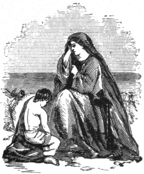 “Yes!” exclaimed the woman, commencing to cry again; “an’ a husban’, too. I don’t care much for him, for he’s a brute, but Johnny—blessed little Johnny—oh, oh!”
