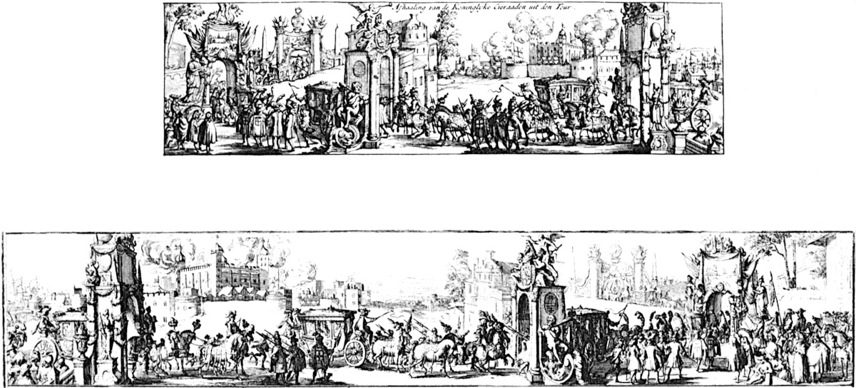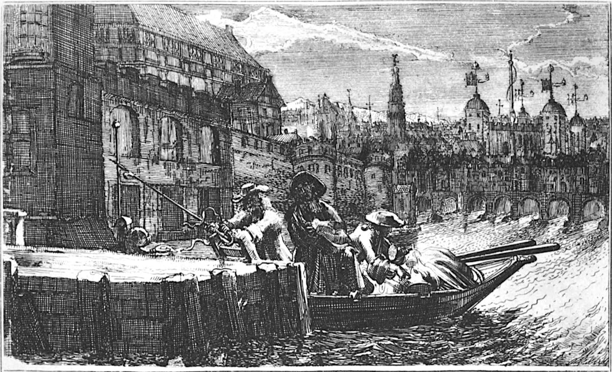 By some means she procured a disguise in the shape of a wig and male attire, with long, yellow riding-boots and a rapier, and thus accoutred, on the 4th of June she rode to Blackwall, where she had hoped to find her husband, but, failing in this, she rowed with a female attendant and a Mr Markham, who had accompanied her from Highgate, to a French vessel lying near Leigh, which took them on board. Seymour, also disguised, escaped from the Tower by following a cart laden with wooden billets. He got away unperceived, and managed to reach a boat waiting for him by the wharf at the Iron Gate, but, on arriving at Leigh, they found the French ship, with Arabella on board, had put out to sea. The weather was against the ship in which Seymour was sailing making Calais, and he had to go on to Ostend, where he disembarked.